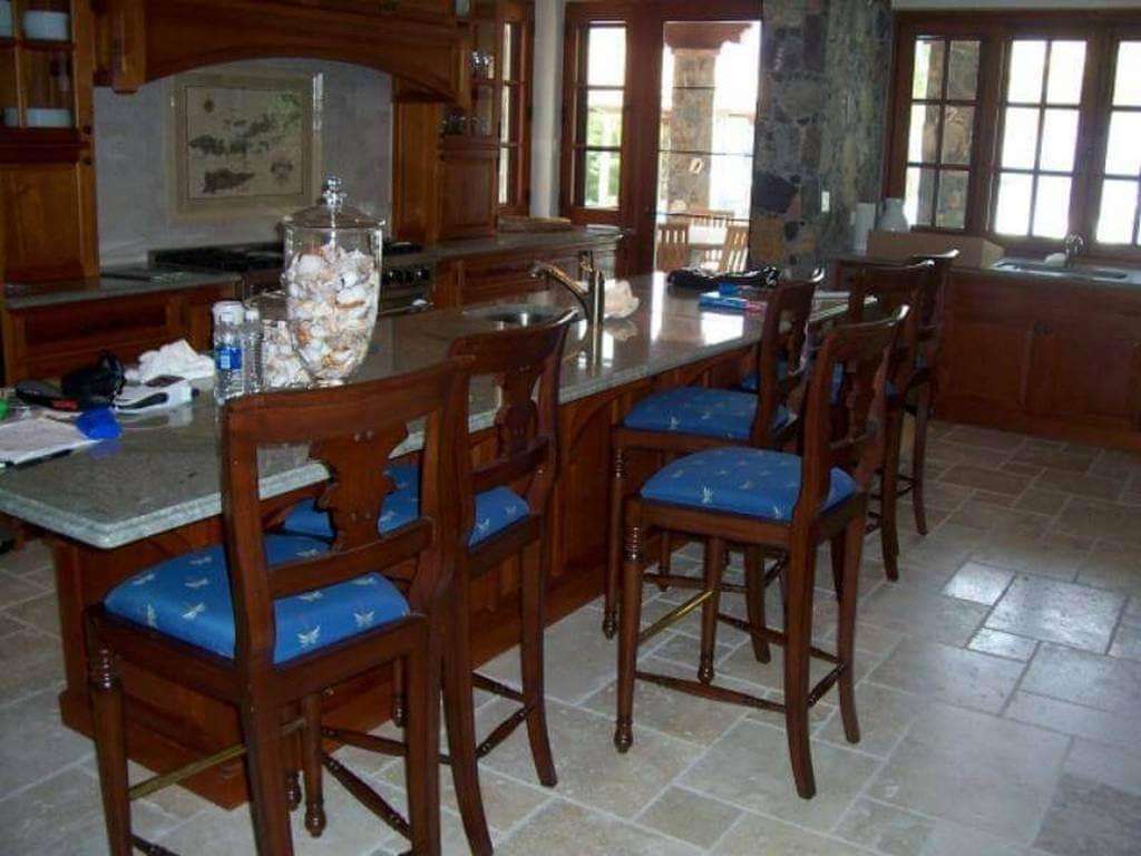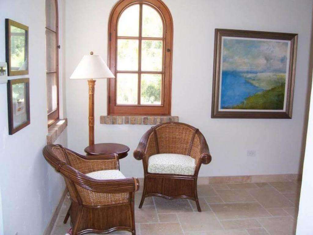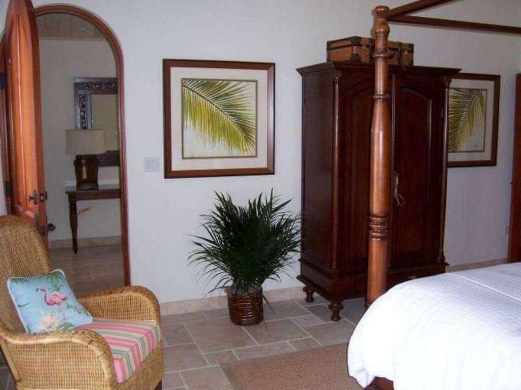 The villa is home to impressive custom details - mahogany cabinetry hand carved in Honduras, lovely tile design throughout, cypress ceilings, designer island decor, artisan lighting, and botanical art prints.