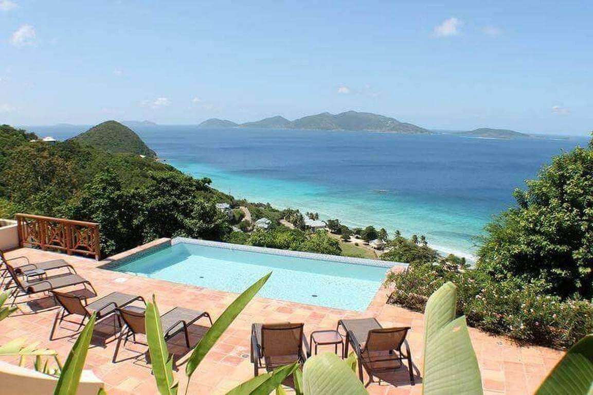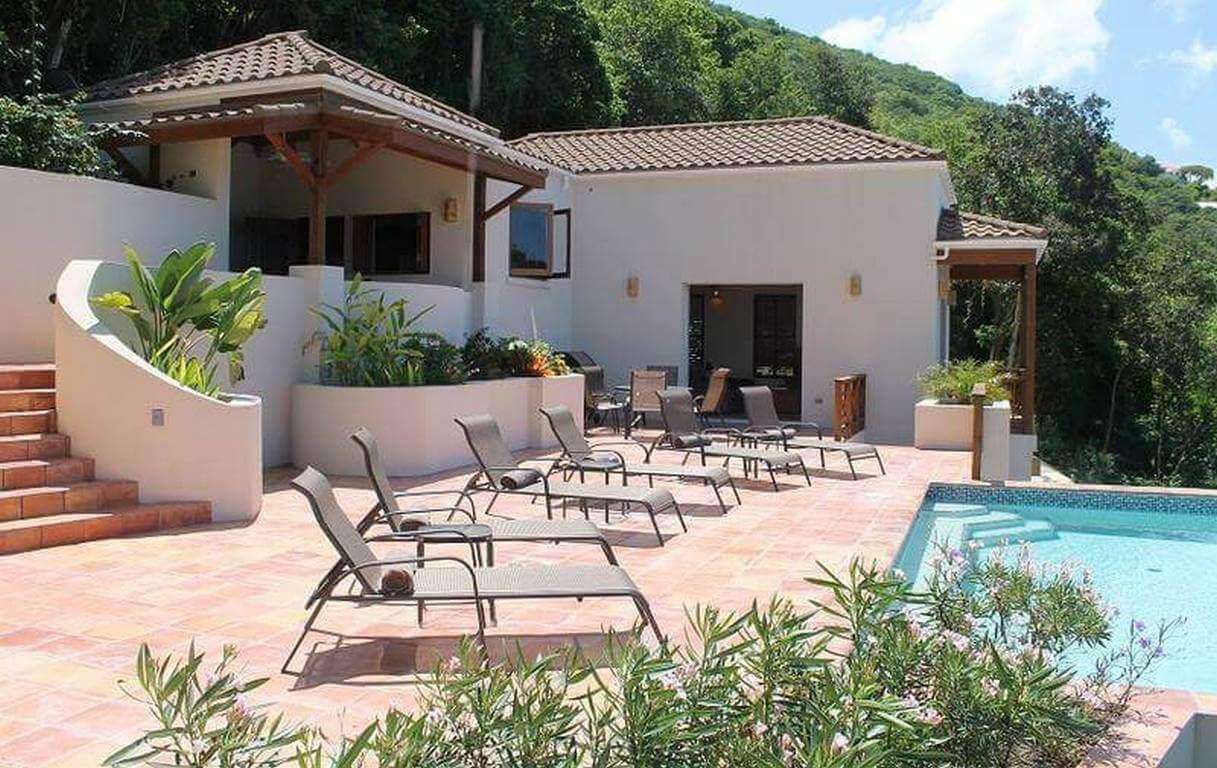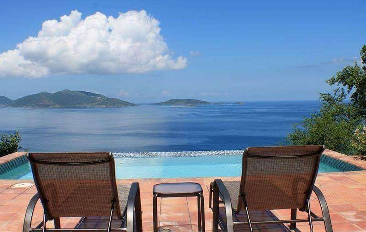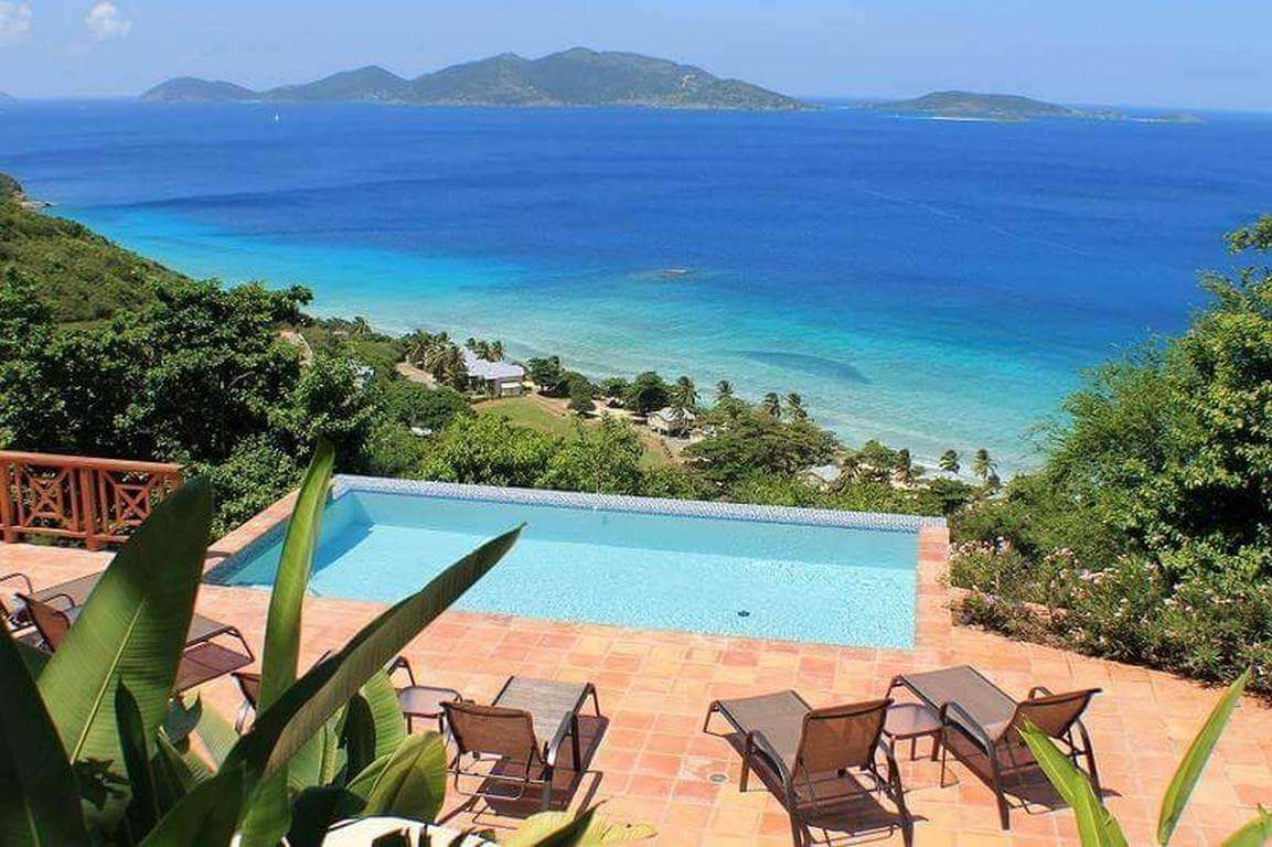 The pool terrace, set with chaise lounges for tanning, overlooks sweeping views of the white sands of Long Bay Beach below and far beyond to Jost Van Dyke and small picturesque cays, just perfect for lazy daydreaming, sunset cocktails as you watch the sun color the sky at the end of each day, and for stargazing at night. There's also an outdoor shower on this terrace for convenient after-beach rinse-offs.