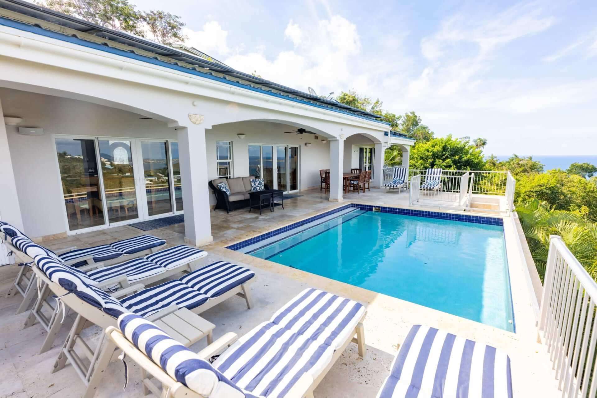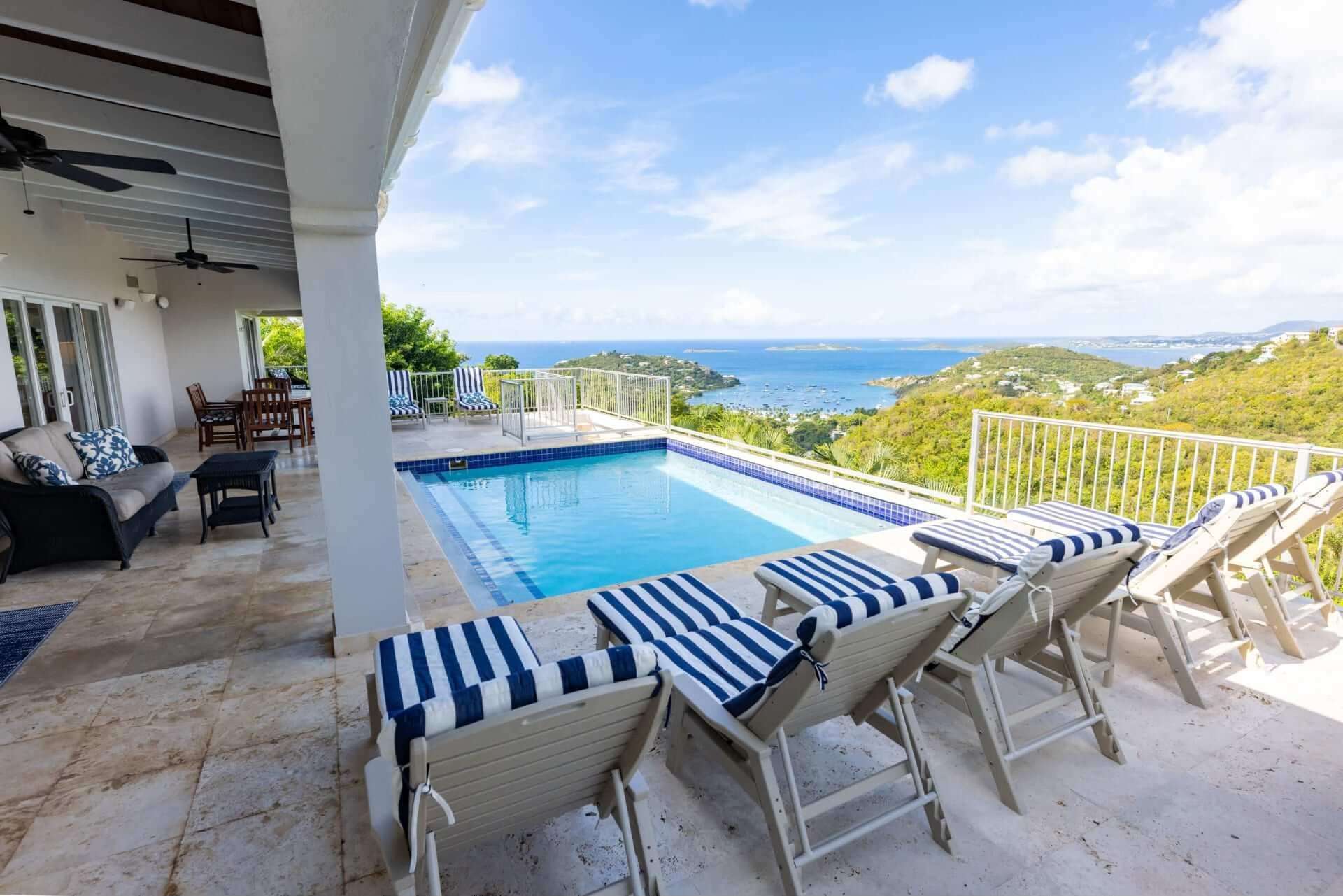 This exceptional and private gated residence is located above Great Cruz Bay on the enchanted island of St. John. Angel’s Envy boasts commanding views of the Caribbean sea and the perfect location for an amazing sunset.