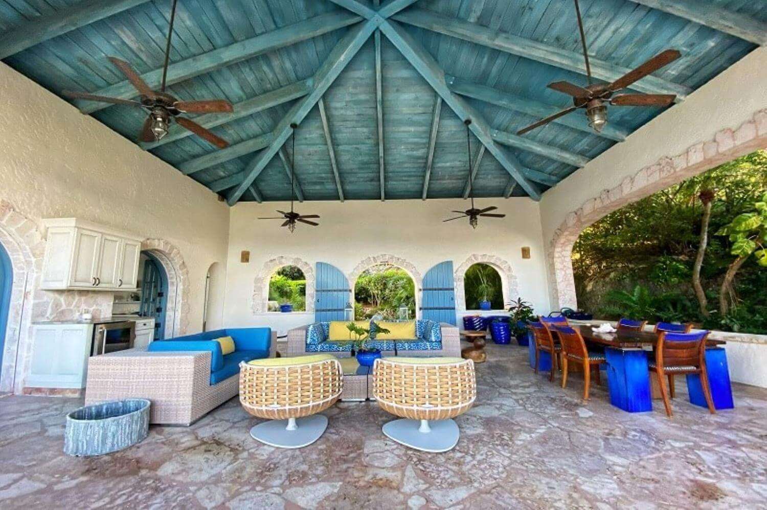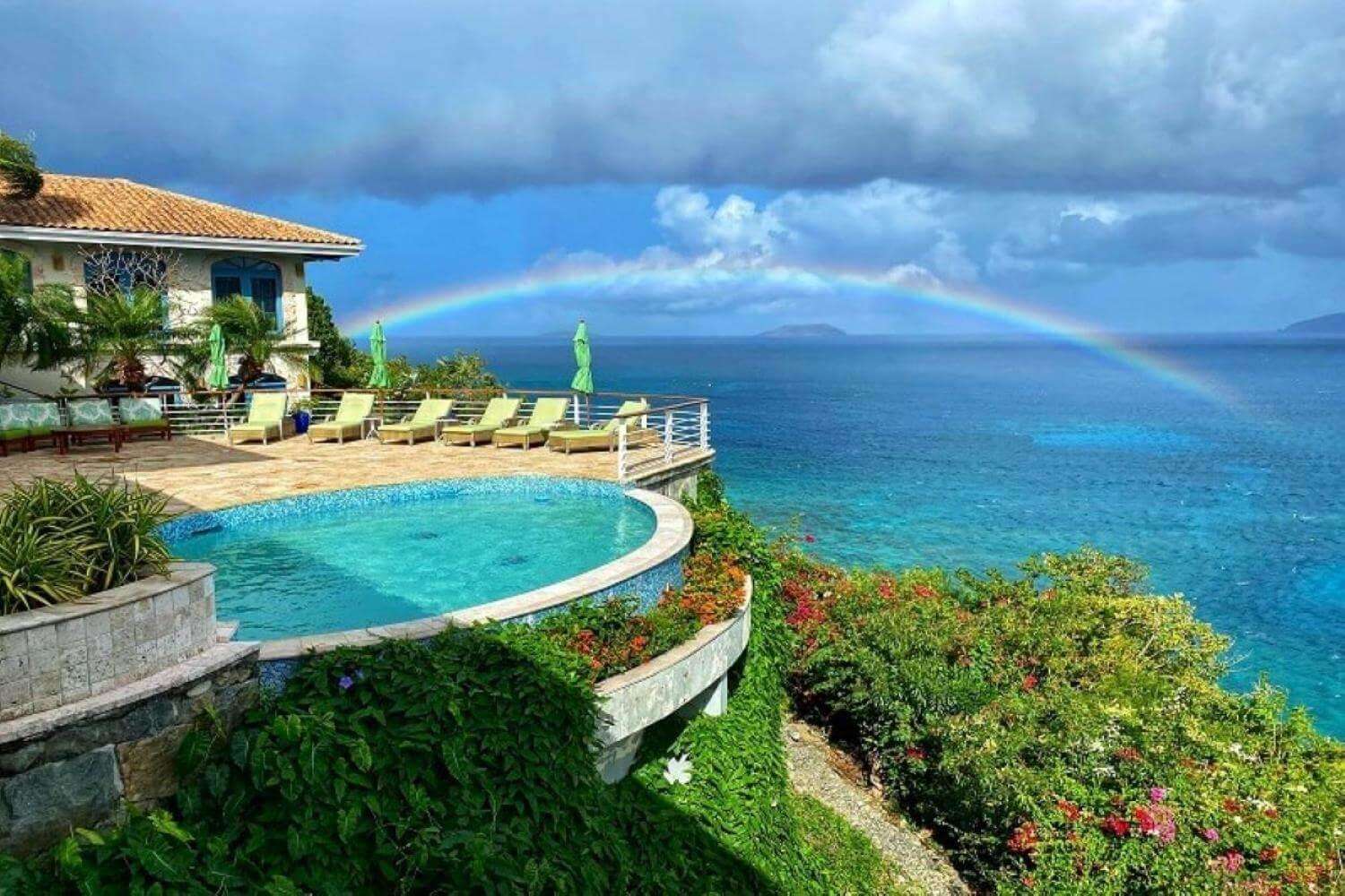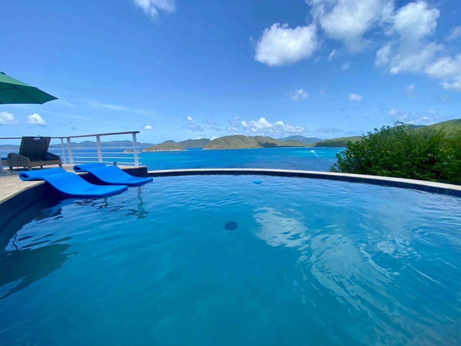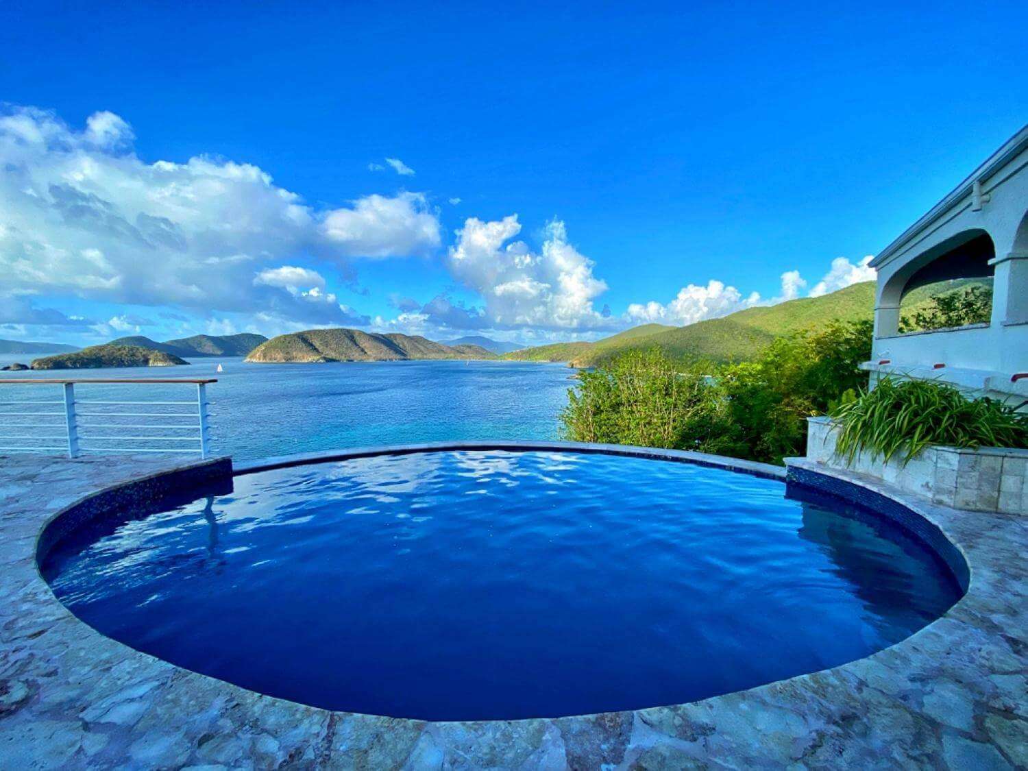 CliffHouse is located in lower Peter Bay, a gated neighborhood on the North shore of St. John. It is 12,000 SF & sits on 3 acres directly next to the National Park for ultimate privacy. At 100 feet up from the shoreline you can hear the waves crashing on the rocks all day & night. From EVERY window & door are incredible views of Jost Van Dyke, Tortola, Cinnamon & Peter Bay beaches. In the mornings you have a front row seat to sunrises. The beautiful lanai between the master and living room pod offers shade all day long. We have a pool & jacuzzi with sweeping views from all angles. There are 4 bedrooms to consist of 3 kings and 1 room with 2 queen beds. All have en-suite bathrooms and there is a half bath off the kitchen. All bedrooms, pool deck & gym have JBL portable speakers. It is a pod style layout with AC in all pods. The WIFI is very strong over the entire property including the pool deck. There is a large gym, an array of board games (& corn hole) and plenty of beach chairs. It is about a 5 min walk to the sandy beach of Peter Bay where there is great snorkeling.