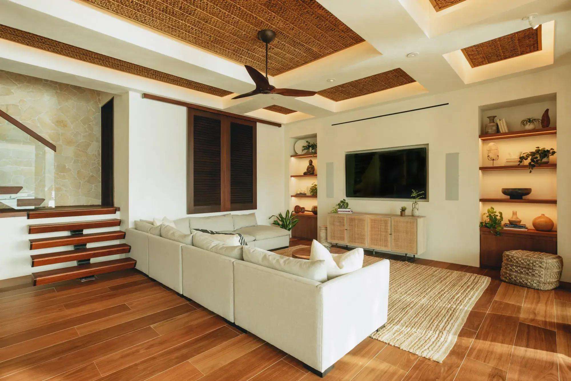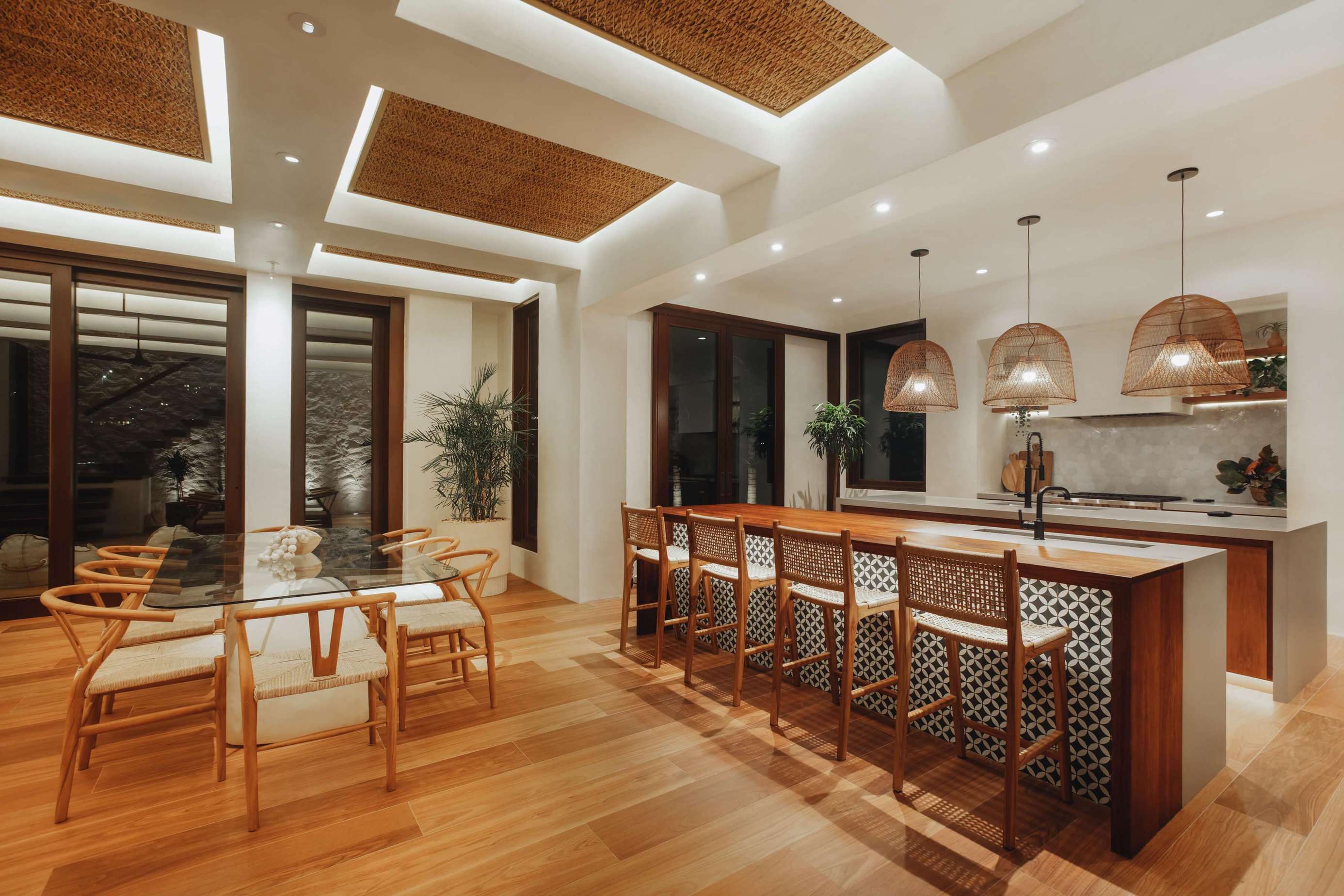 Designed with a modern, yet traditional Indonesian aesthetic, this home's expansive open spaces immaculately frame the unrivalled island views from every room. To be here is to rediscover open skies, the blissful sunshine, and the tranquil nature of slow-paced island life. No expense was spared in the construction of this home, from the custom kitchen to surrounding floor-to-ceiling glass windows and hand-woven bamboo ceilings. Breathtaking panoramic sea views shimmer from every angle, with an abundance of outdoor areas to dine, unwind and relax, you will truly become accustomed to the hybrid outdoor-indoor living style, having the best of both worlds.