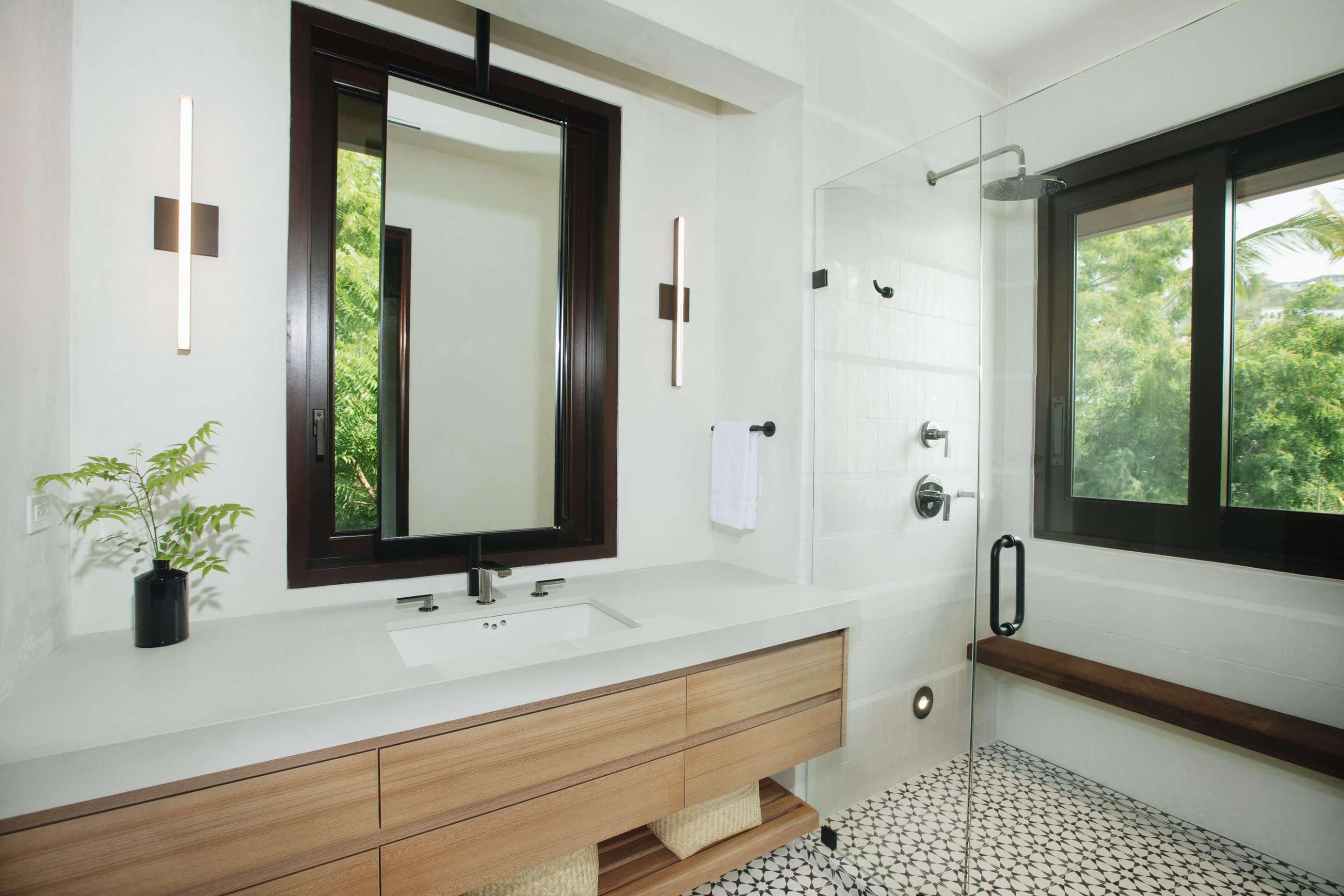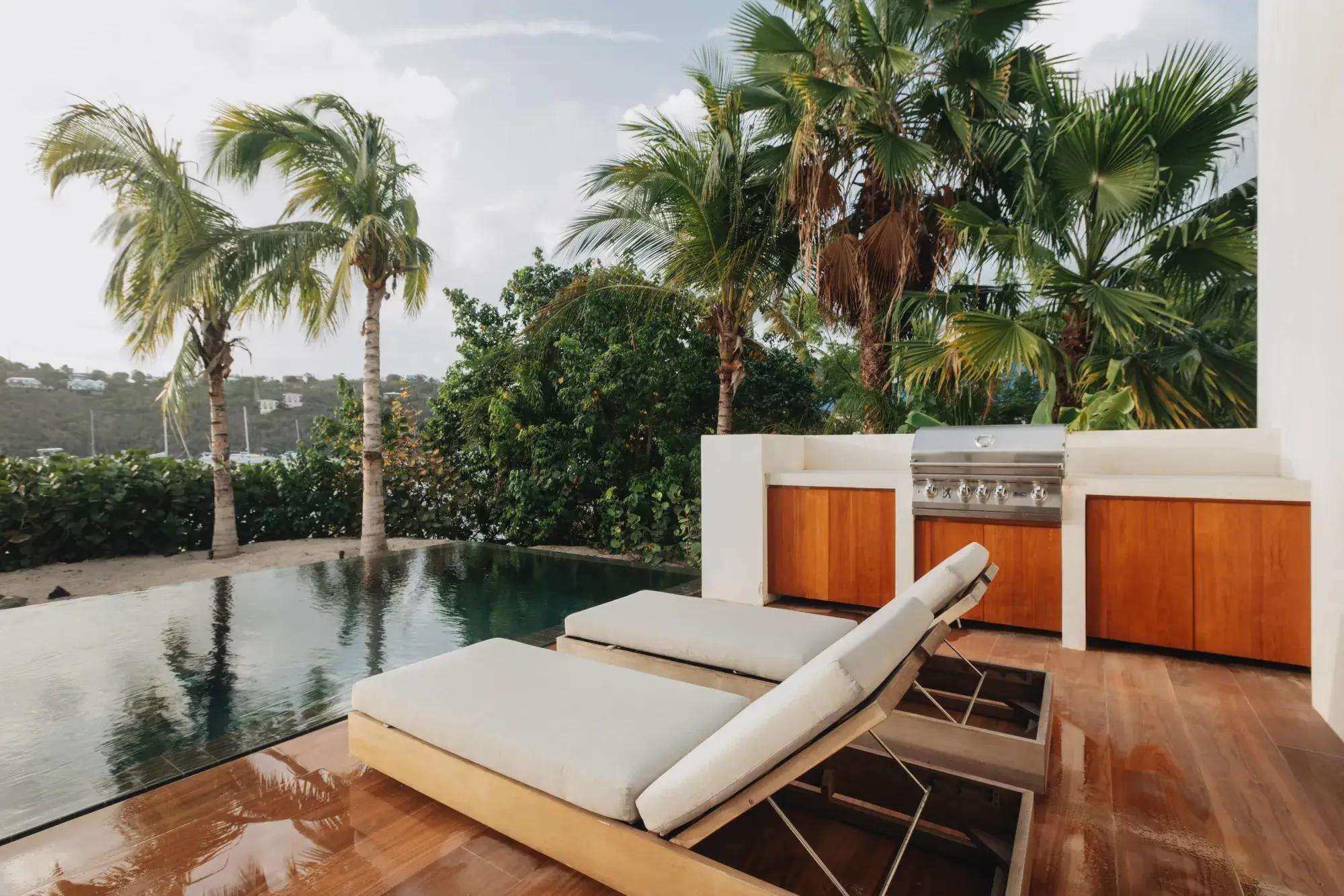 Spend serene evenings gazing at the stars on the deck, gathered around the chic and stylish dining table savouring delicious home-cooked meals and watching movies on the sumptuous sofas. A secluded haven awaits you when it's time to get some rest, discover four enchanting bedroom suites to lay your head and enjoy a deep and replenishing night's sleep. All four-bedroom suites enjoy private bathrooms, spacious walk-in closets, and spectacular views of Great Cruz Bay.