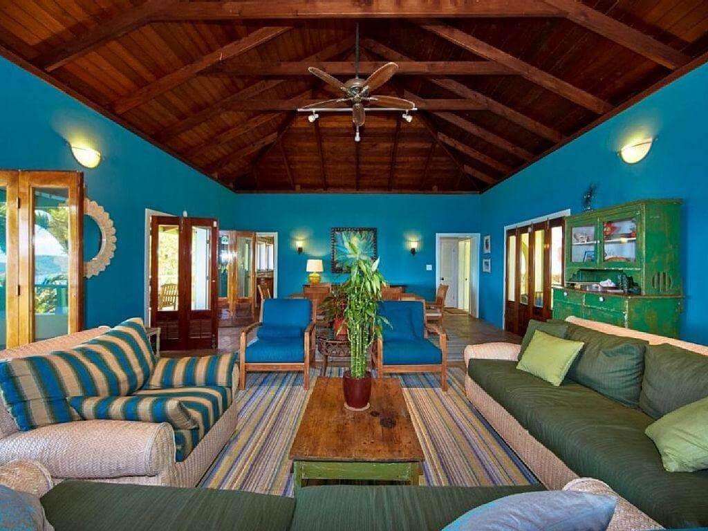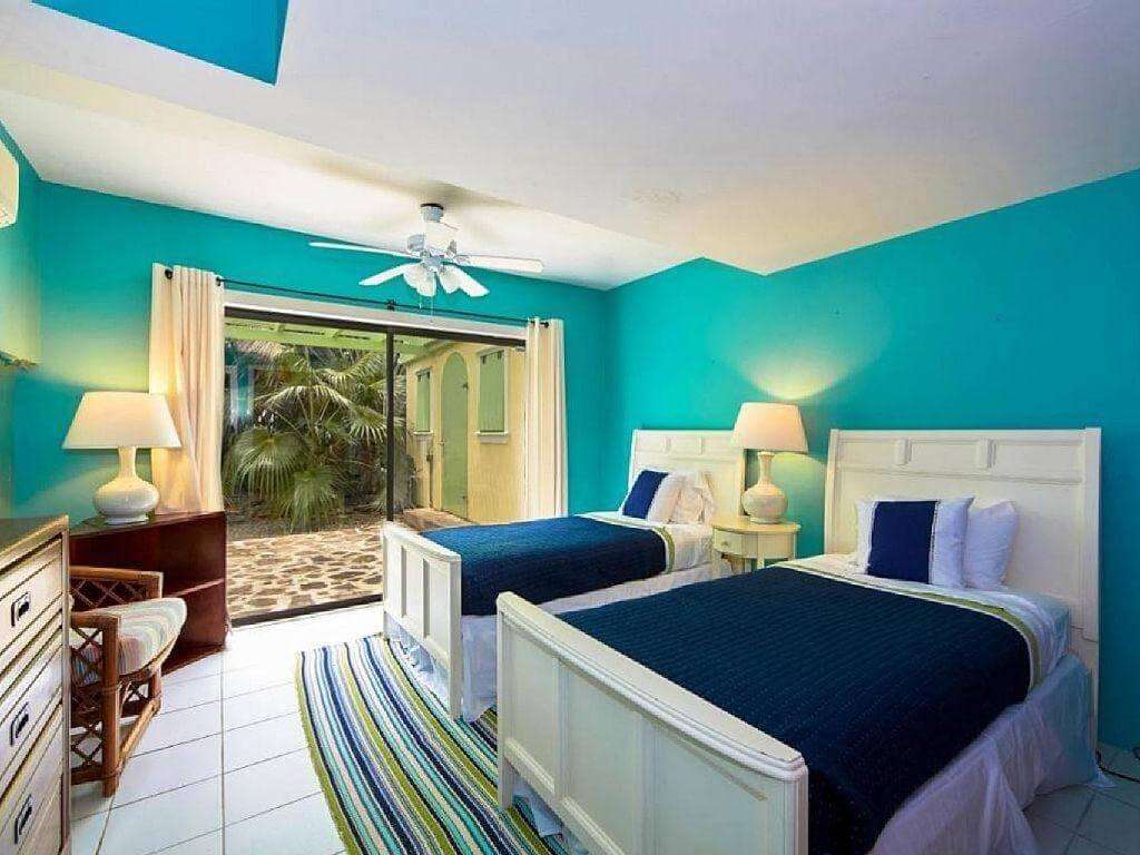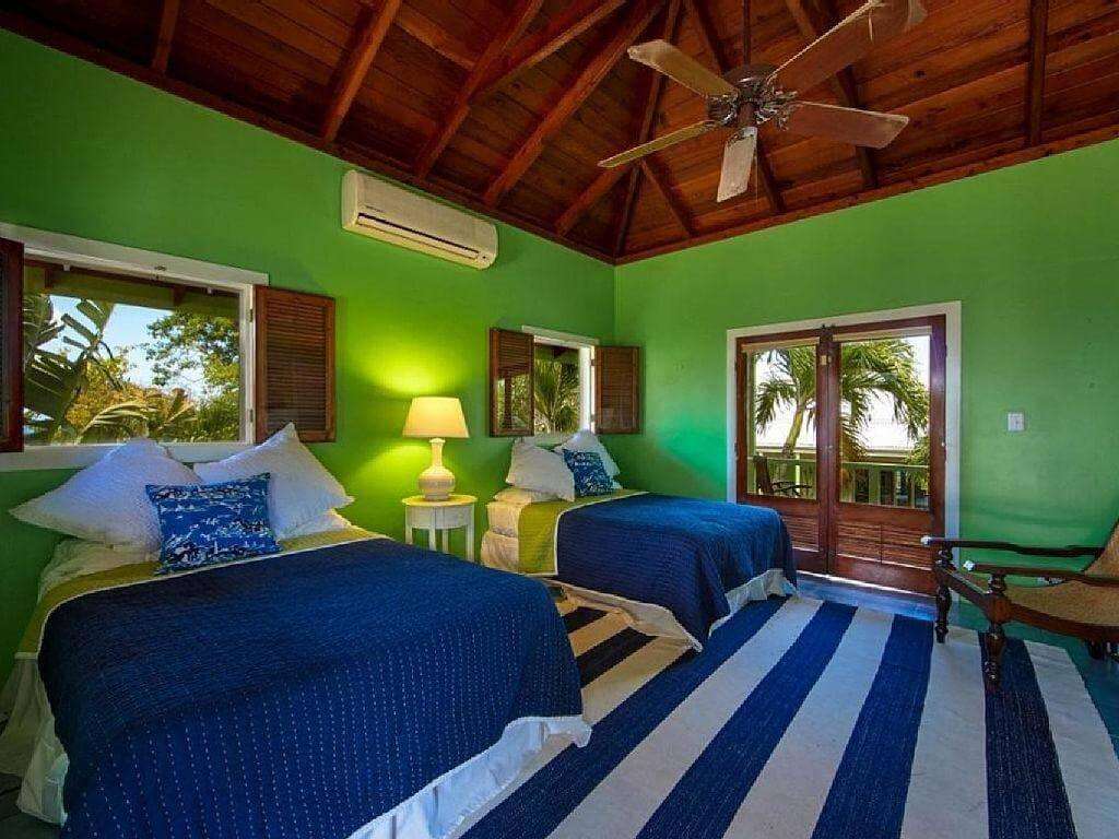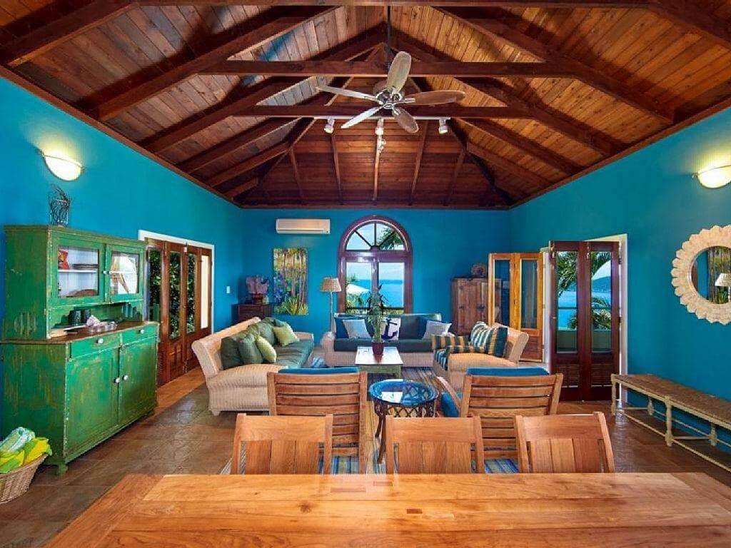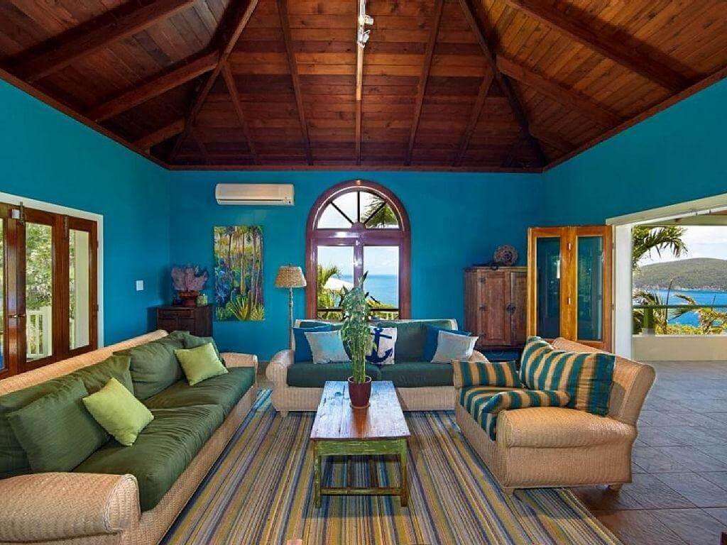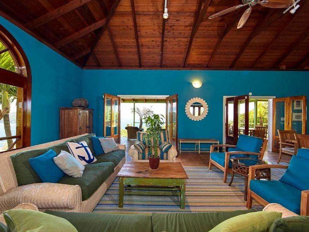 The huge Master Suite (separate and private pod) features a comfortable king sized four poster bed with supple Egyptian cotton sheets, complete with a flat screen TV, Bose Sound System, lounge area with day bed and writing desk that overlooks the large heated pool, sweeping views of British Virgin Islands and a lush tropical garden. The Master Suite affords itself to peaceful tranquility and awe inspiring sunrises. The expansive bathroom offers a majestic walk-in shower with views of the Caribbean Ocean.