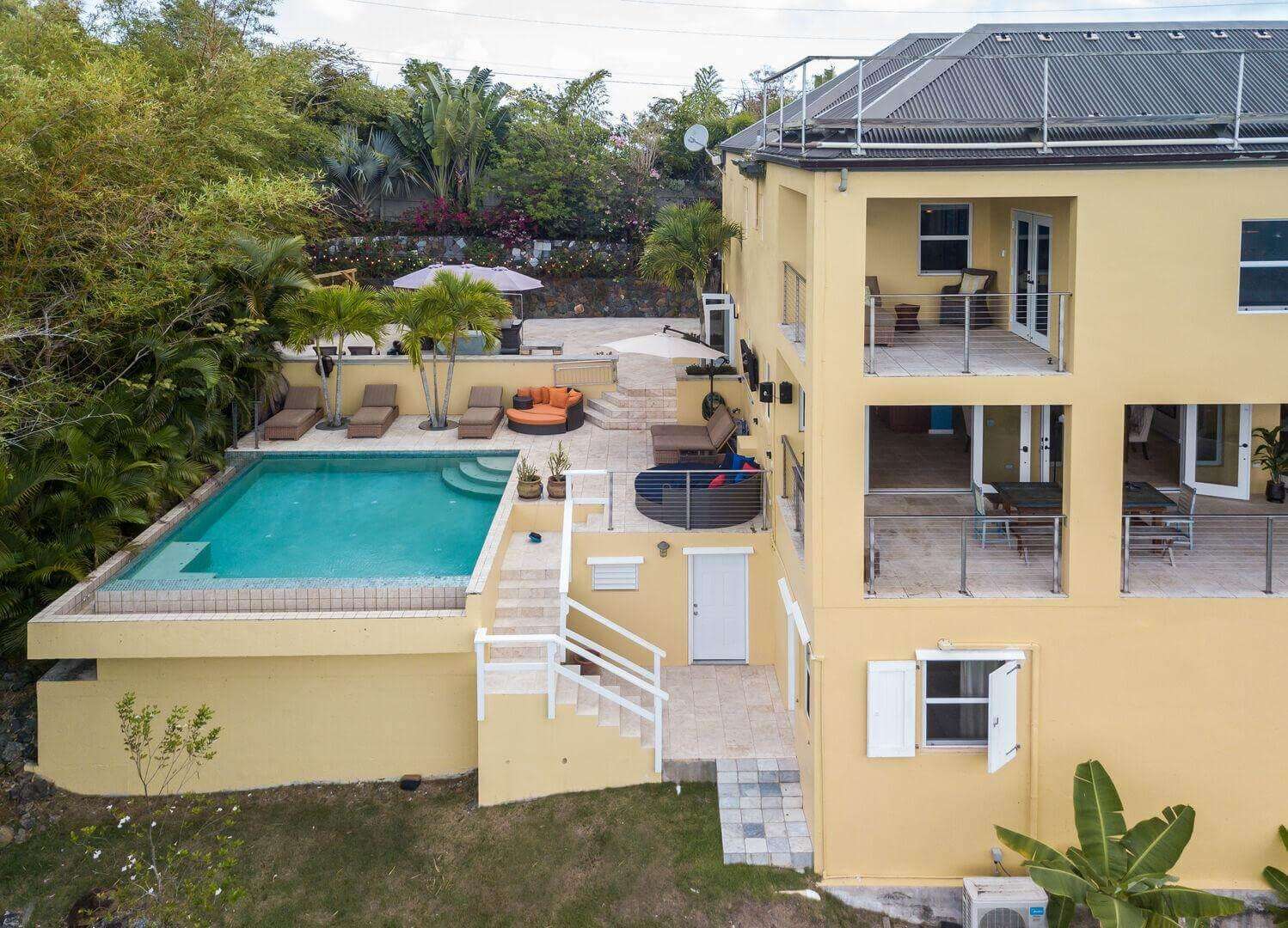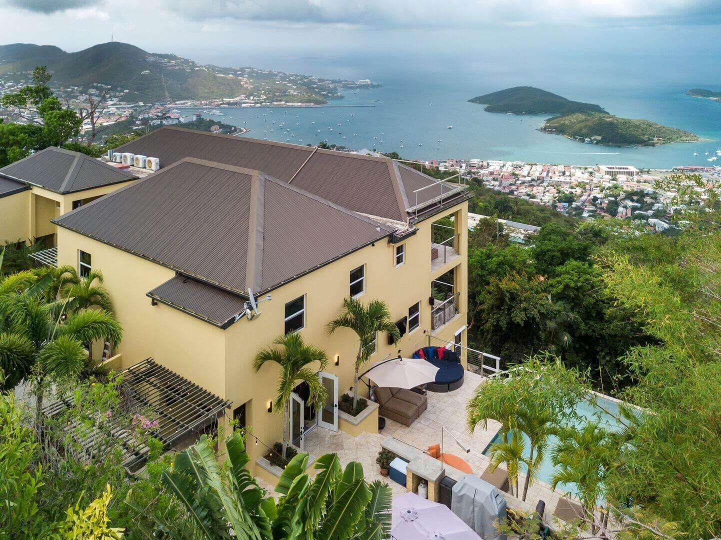 Located on a ridge 300 ft. above town, Outrigger Villa affords views of the mesmerizing Charlotte Amalie harbor with cruise ships on the Caribbean Sea, yachts, marine ports, downtown and the neighboring Water & Hassel islands' vistas. Featuring 5,200 sq. ft. of outdoor space and an infinity edged pool.