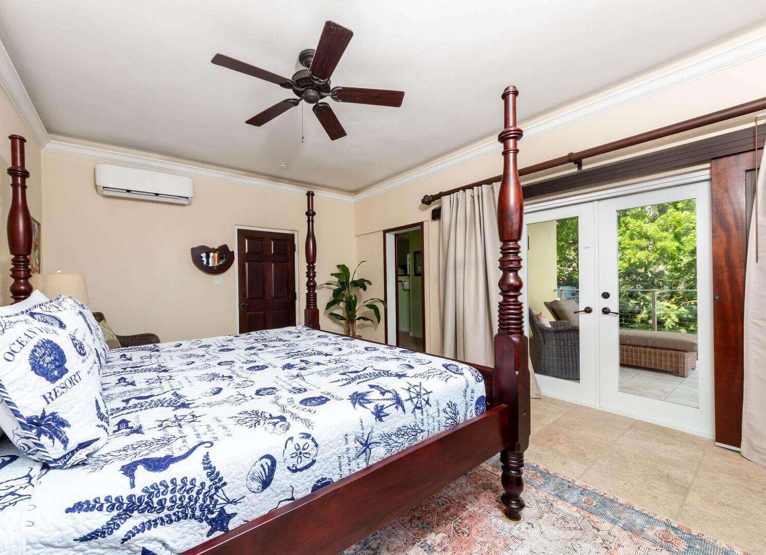 All 4 master bedrooms have wall mounted air conditioning units, a king Size Bed, Wi-Fi, wall mounted HDTV, en suite bathroom (easy step in shower) with his & hers washbowls, spacious walk-in closets, private balcony with harbor & town vistas & i-Phone docking station with digital alarm clock. The fifth bedroom has air-conditioning, a queen lower bunk with twin-sized bunk on top, an ensuite bathroom with shower, and a small sitting room (couch, no TV).