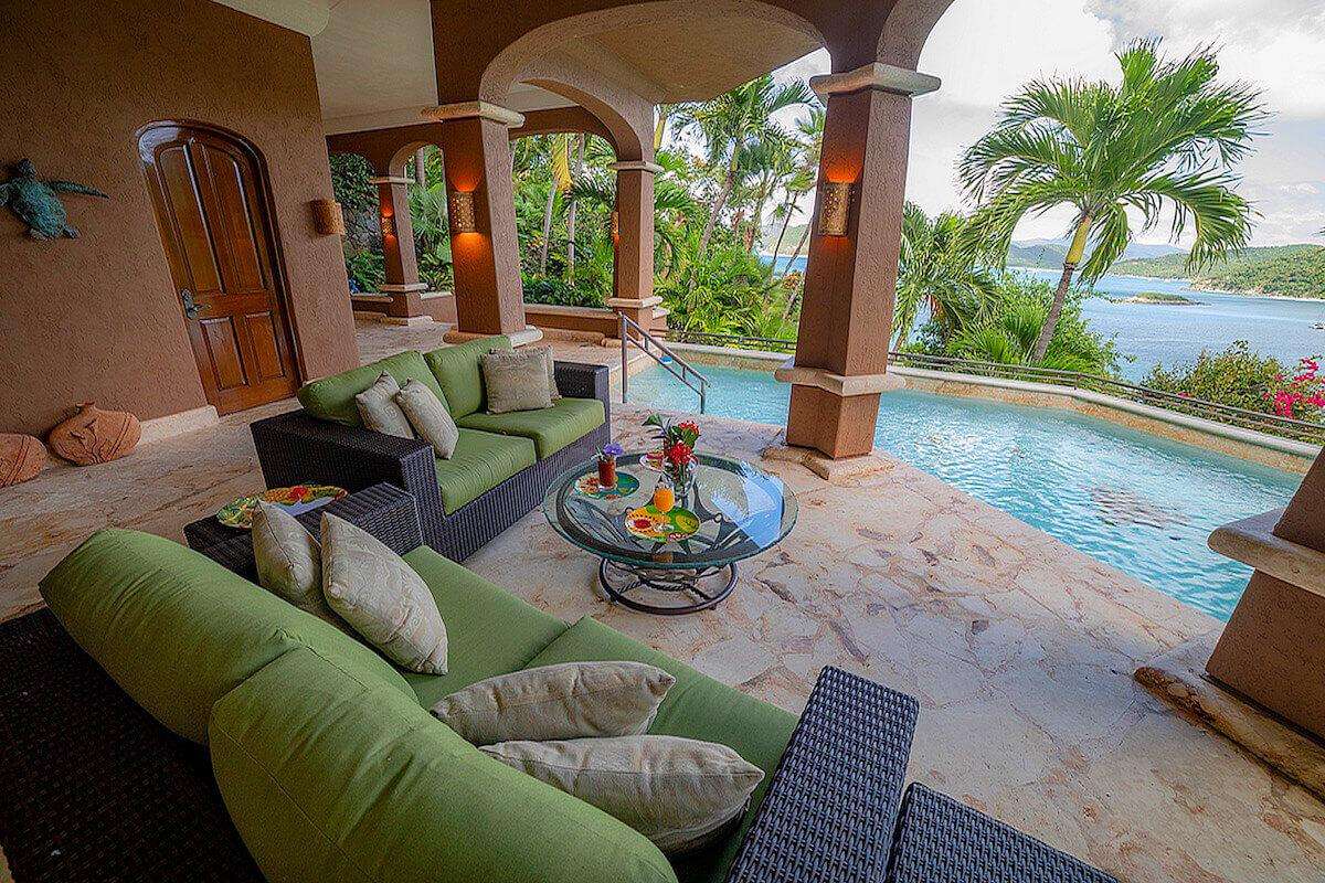 Seacove is a luxury 5 bedroom located in the exclusive gated Peter Bay neighborhood, overlooking Cinnamon Bay beach. A grand courtyard entrance welcomes you to Seacove, and hints at the magnificence within.