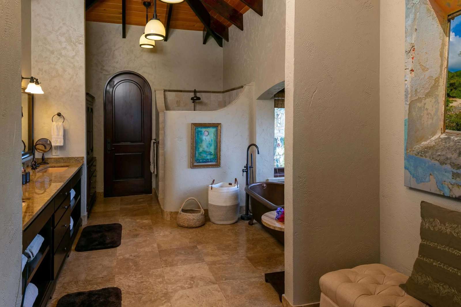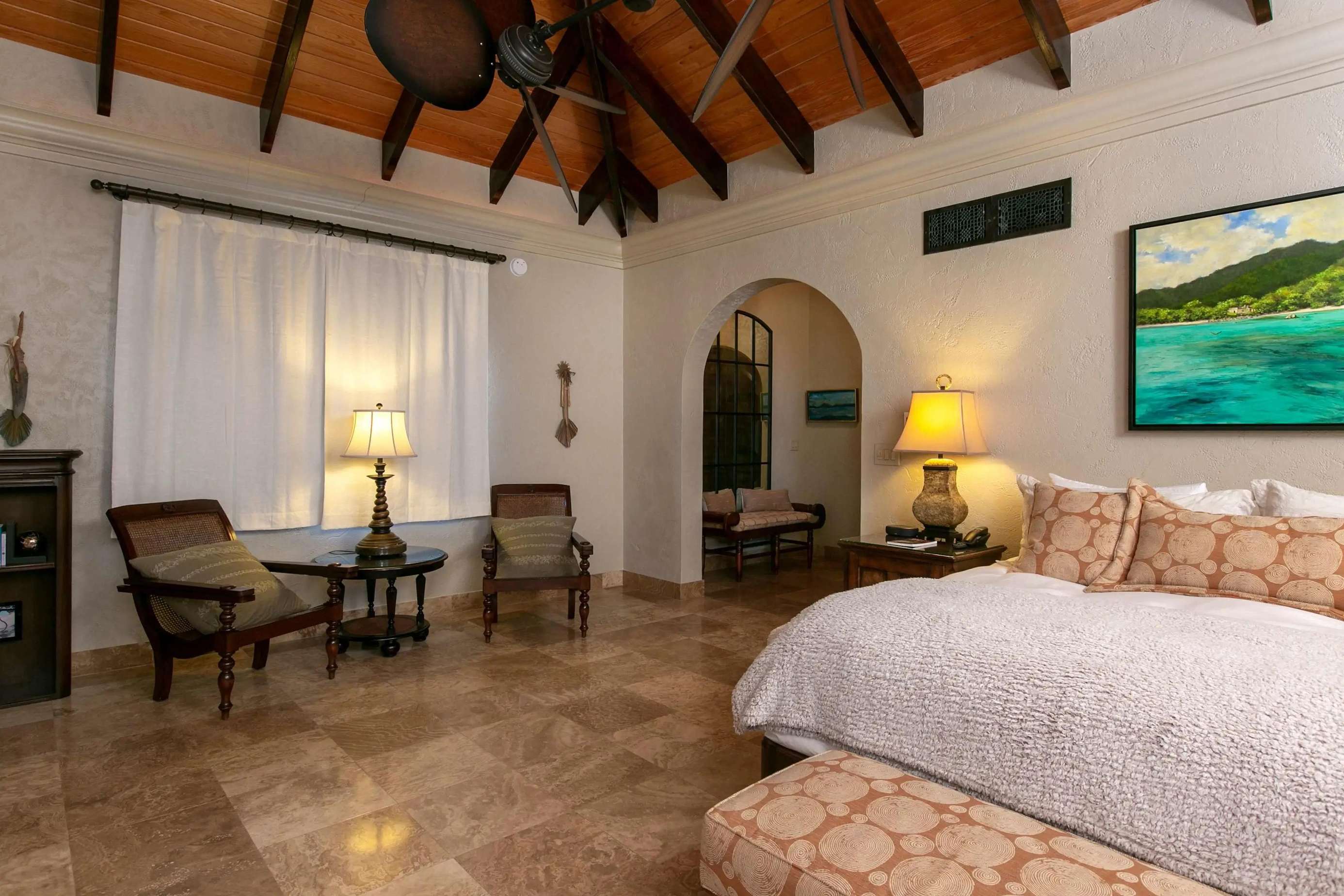 Bedroom 1 | “Here Comes the Sun” - Master Suite, 1 King bed, Couch seating, private balcony, private dual vanity bathroom, outdoor shower & sunrise views