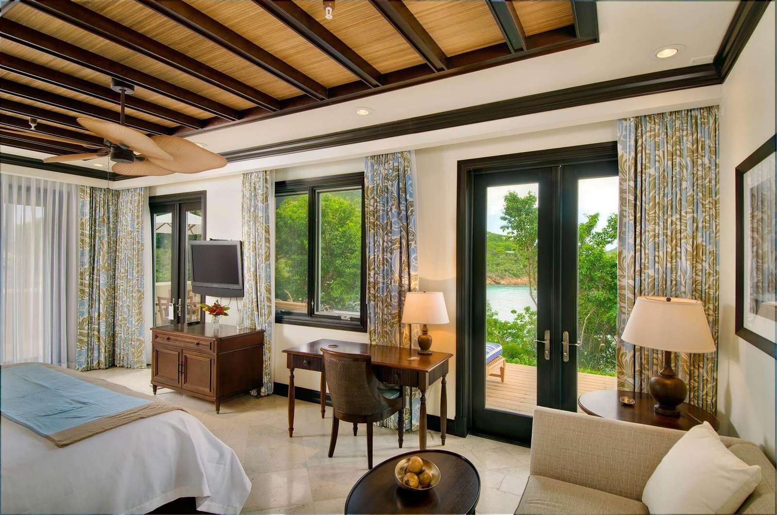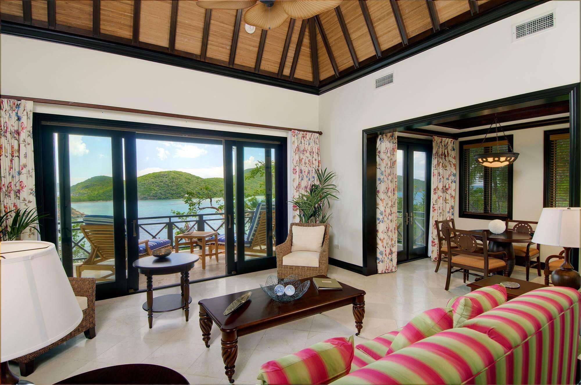 If privacy is of utmost importance, this villa is the perfect match. There's a sense of solitude but not confinement with this open design. As a bonus, this high-elevation location allows for spectacular views. Watch as the sun sets behind Grand Camanoe and Guana Island to the west.