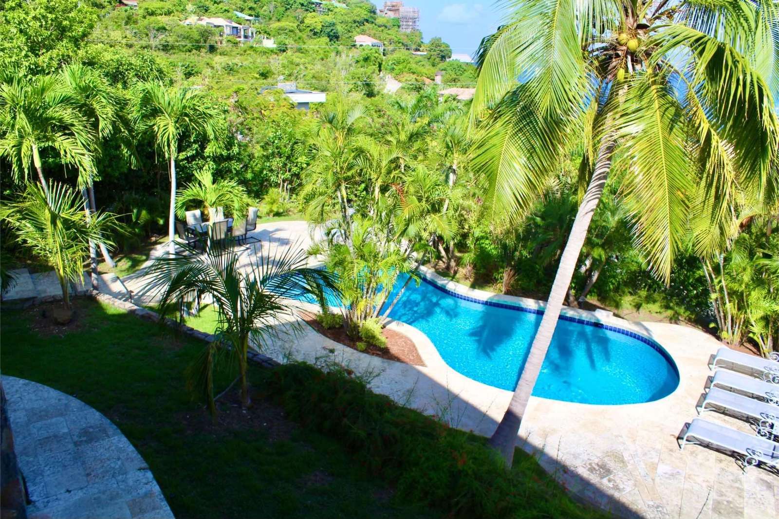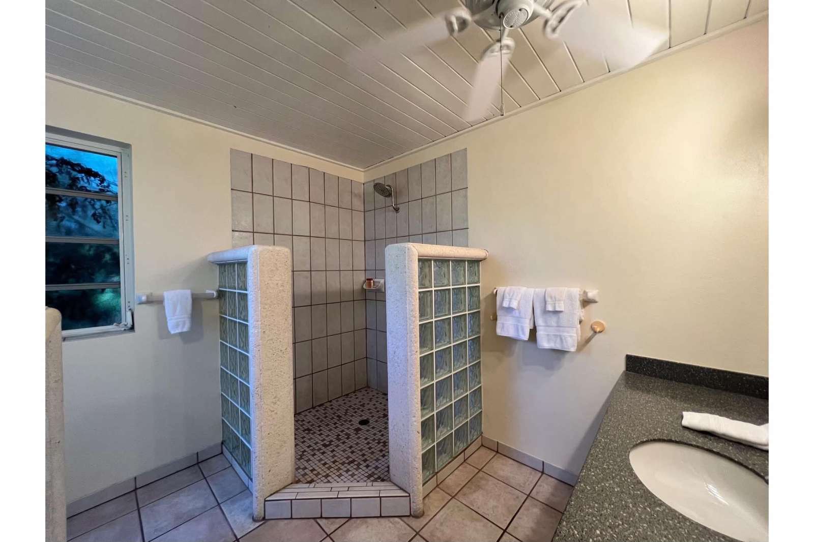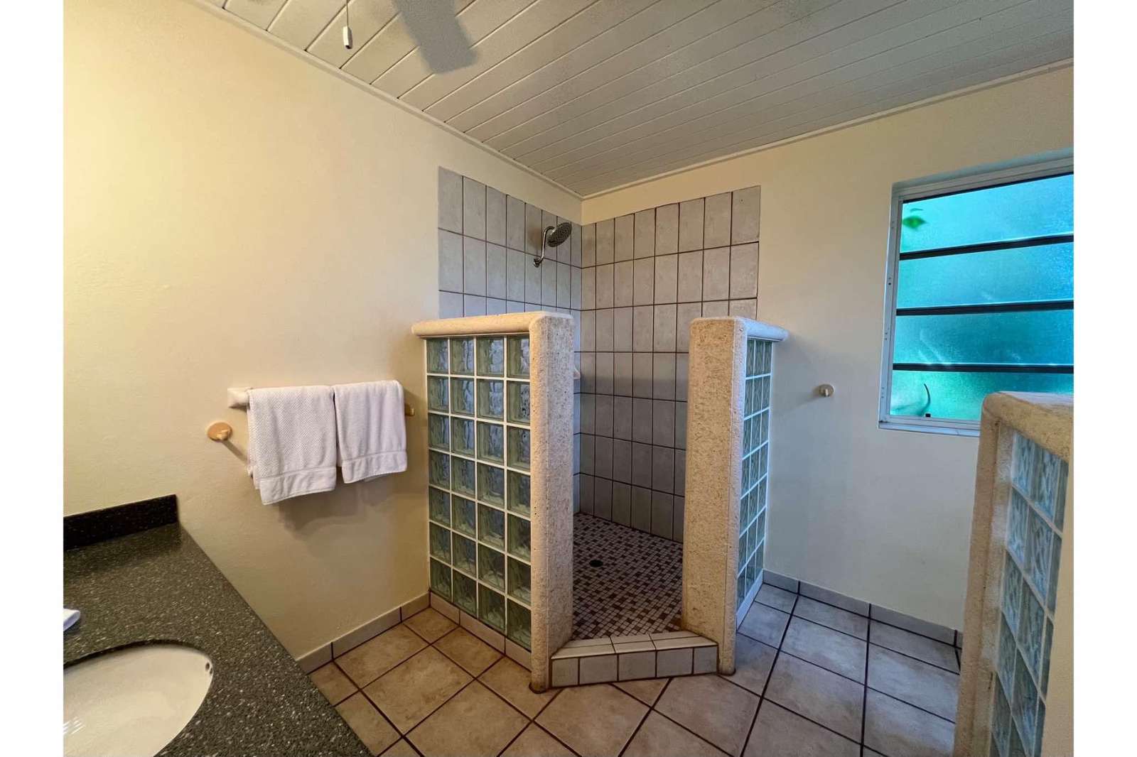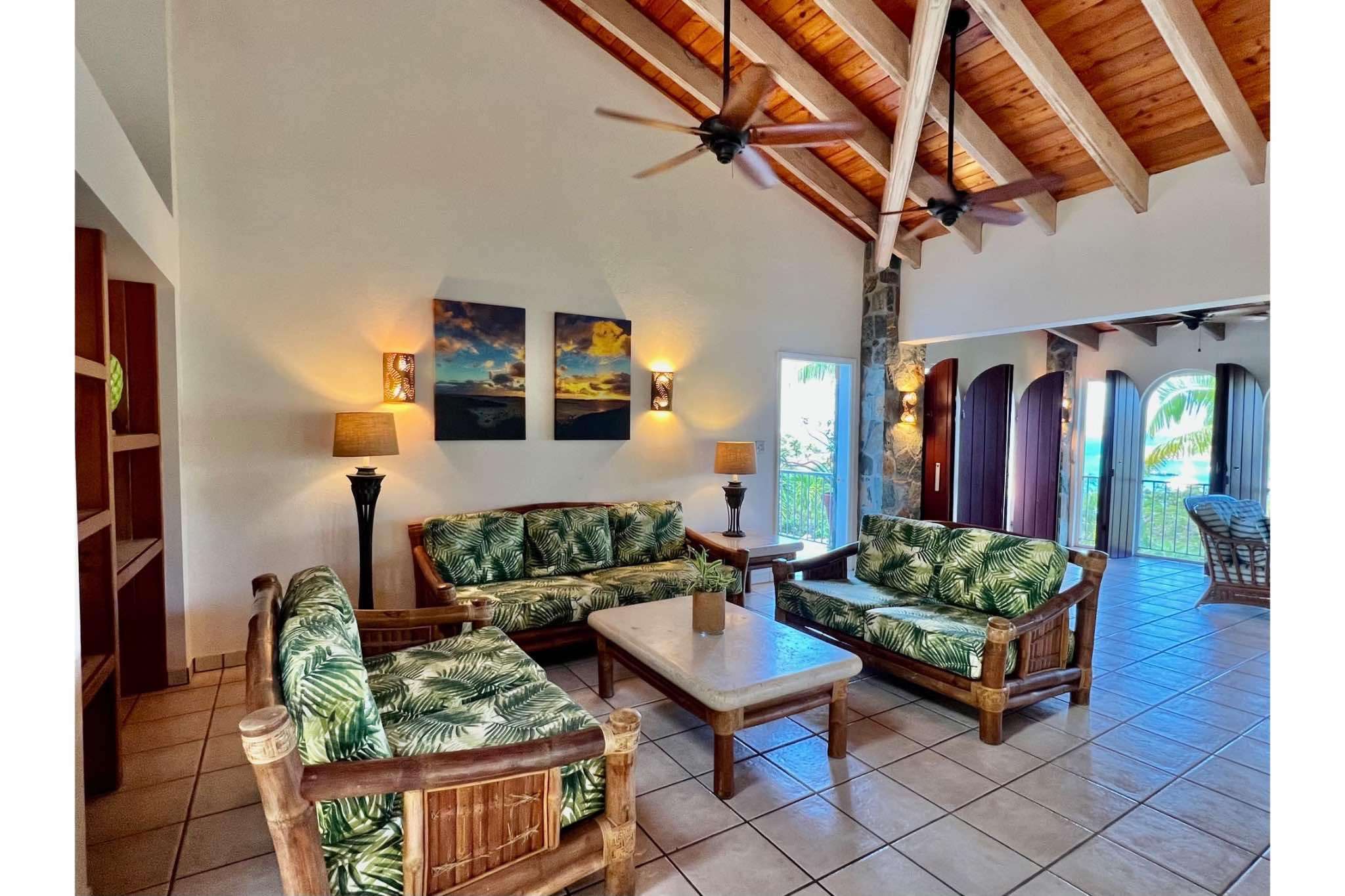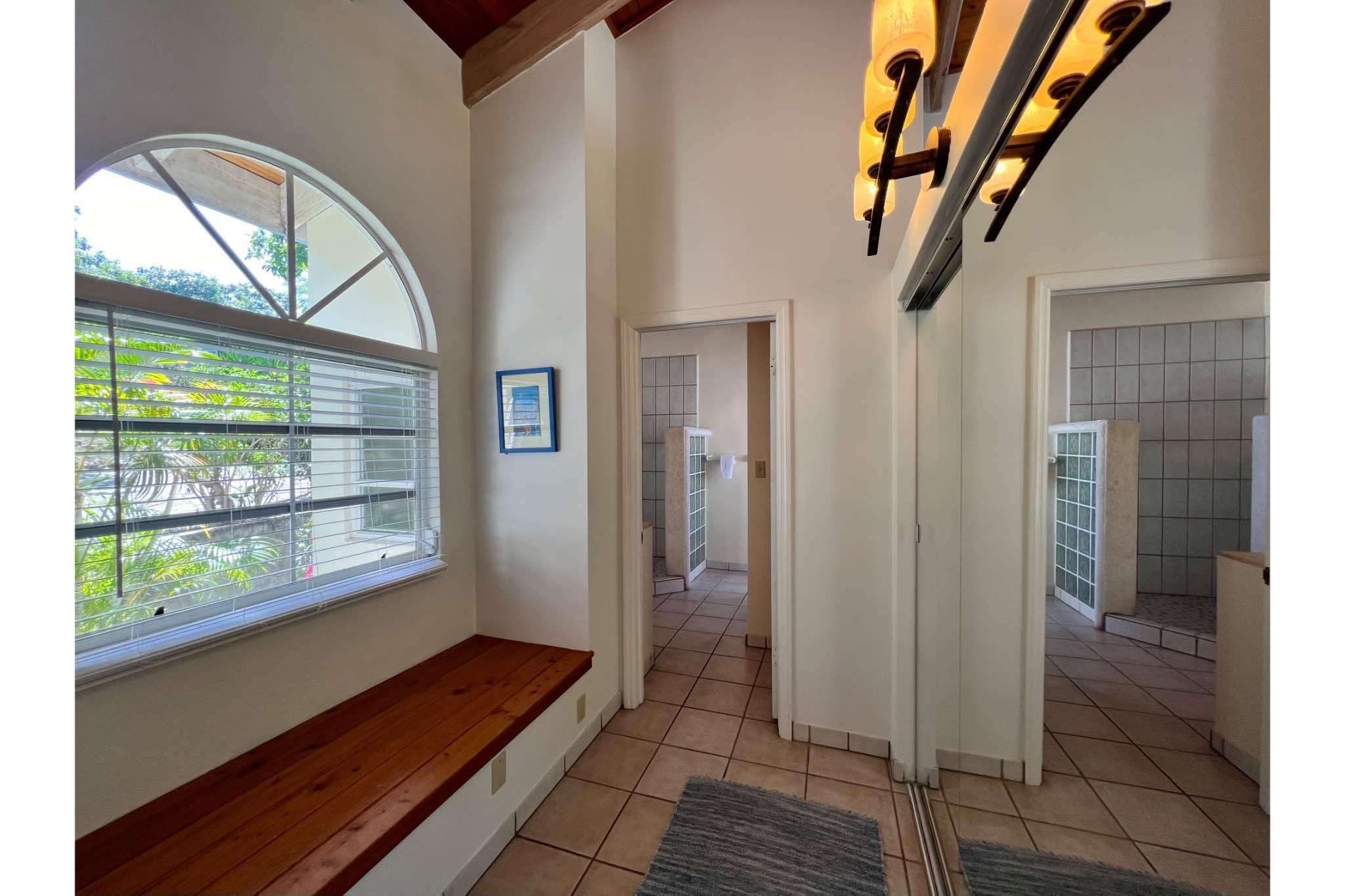 Outdoors, a lush, gently sloping lawn leads to the oversized, peanut-shaped pool. The grounds are especially well-suited for families, offering space for children to play while you unwind, grilling dinner, enjoying the cooling trade winds, and settling into the relaxed rhythm of island living after a day at the beach.