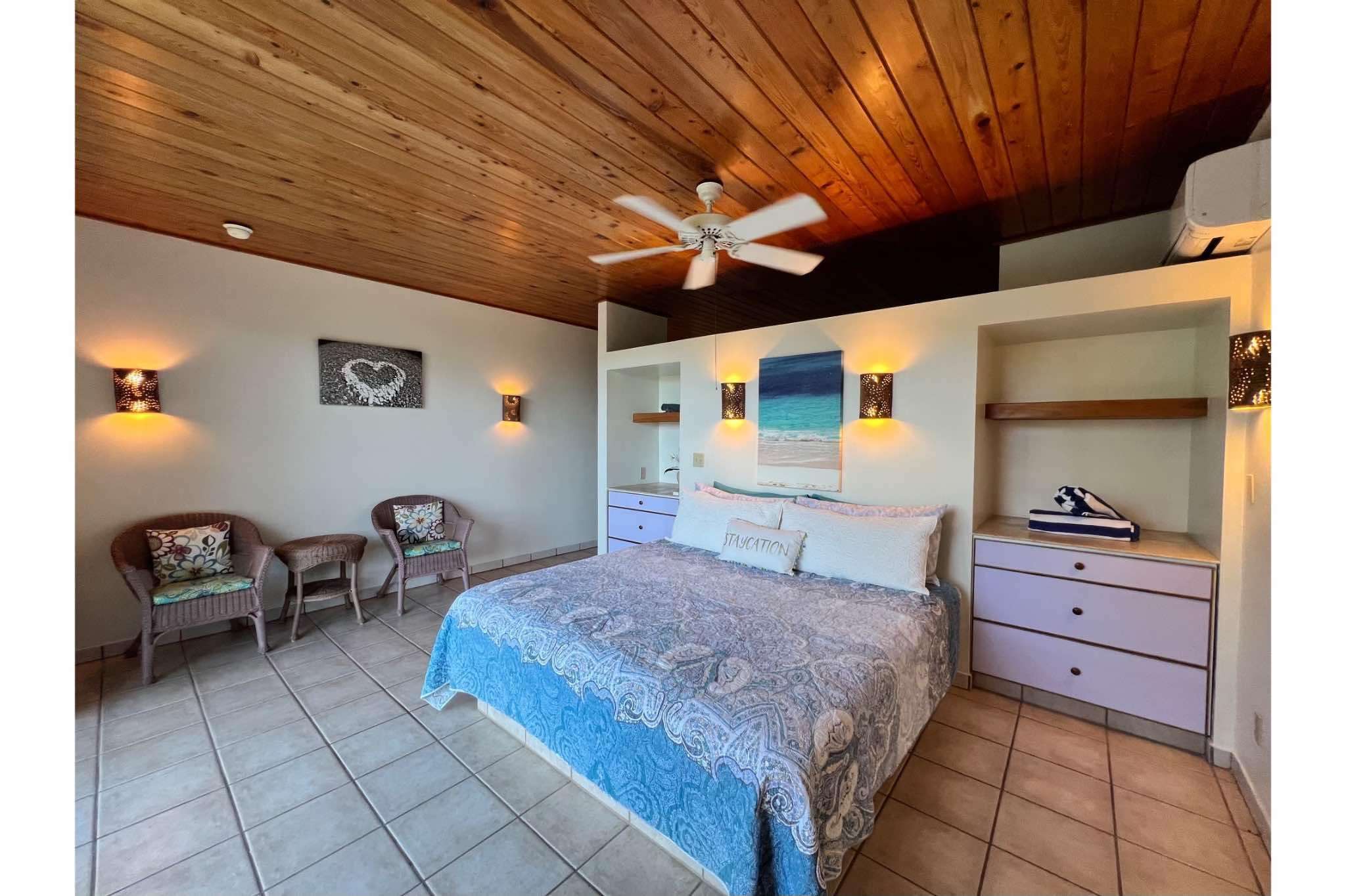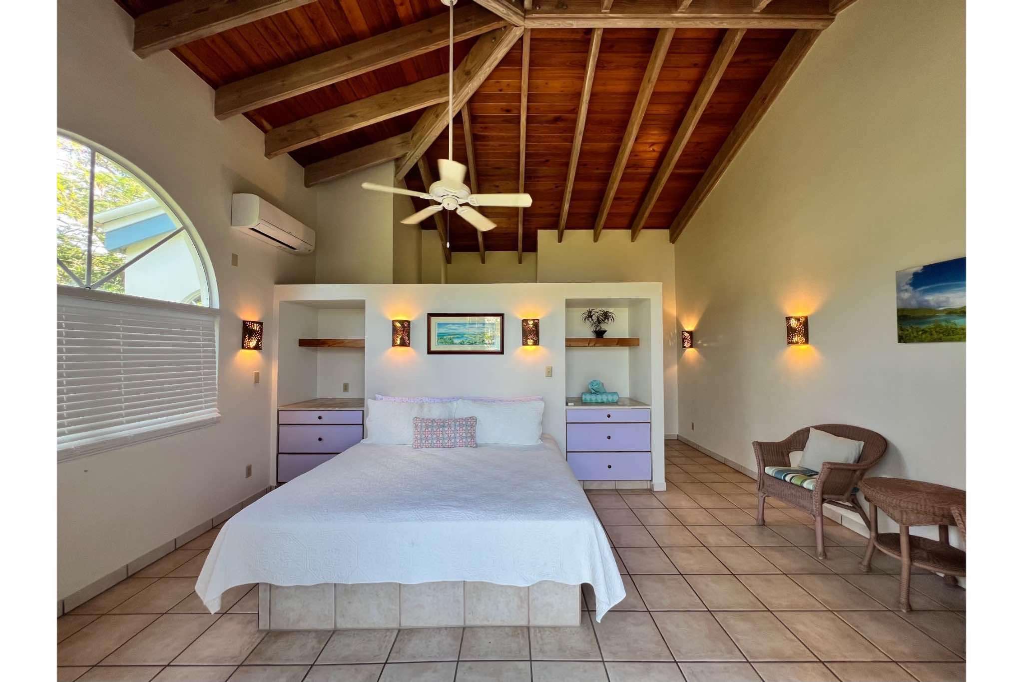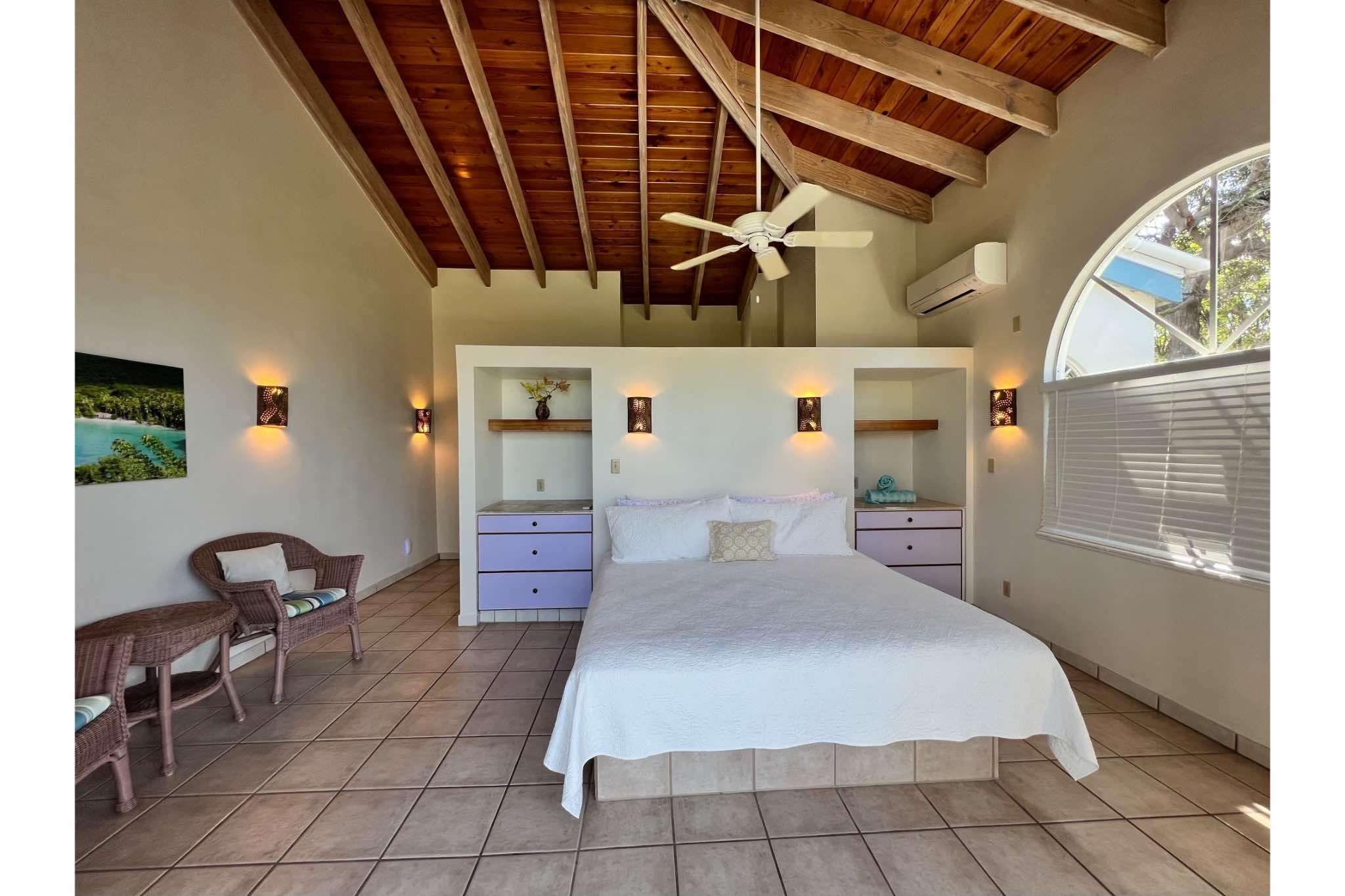 Each bedroom features a king bed and tranquil views over Great Cruz Bay and the Caribbean Sea. Facing west toward St. Thomas, the villa is perfectly positioned for nightly sunsets that wash the property in warm, golden light—creating a setting you may never want to leave.
