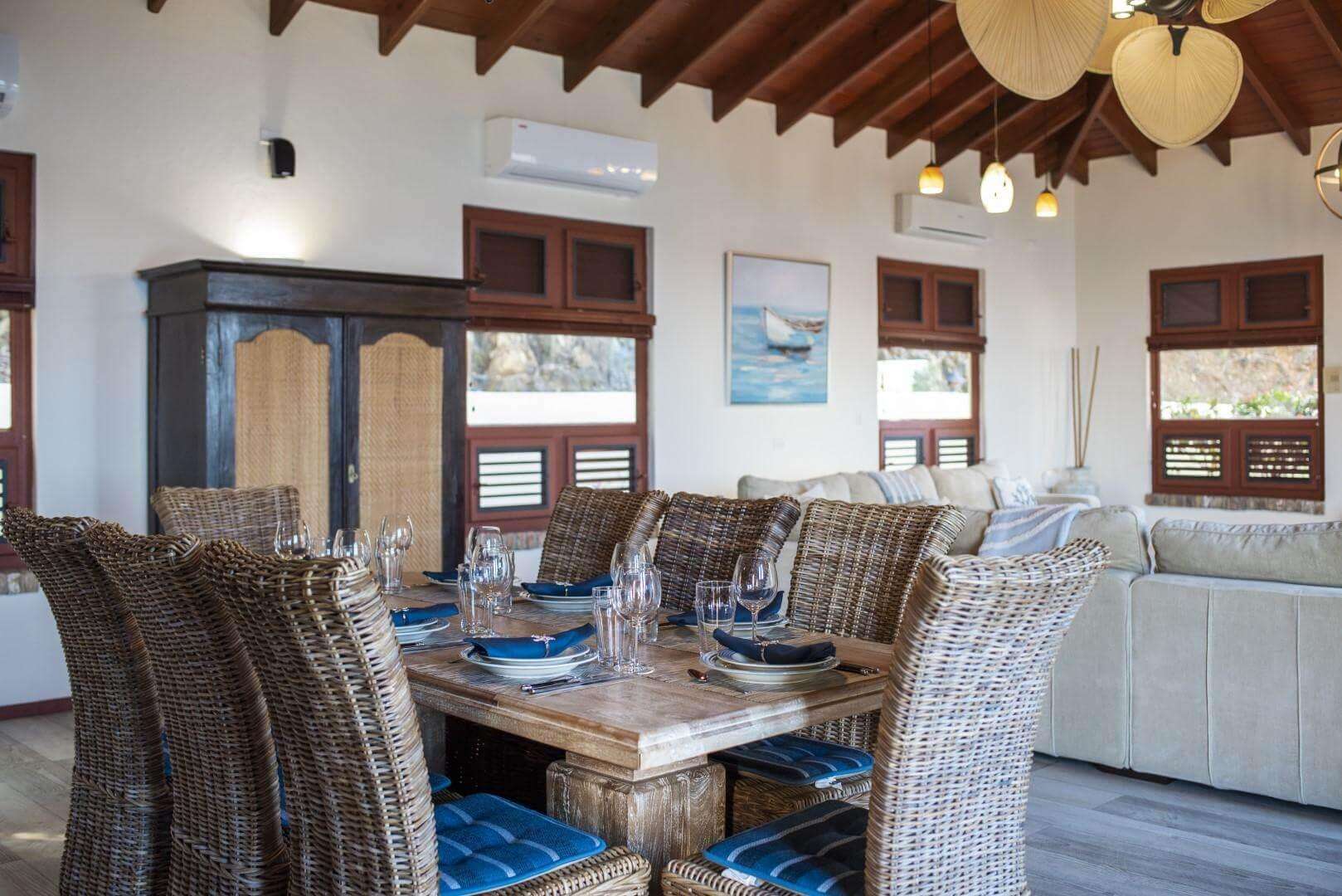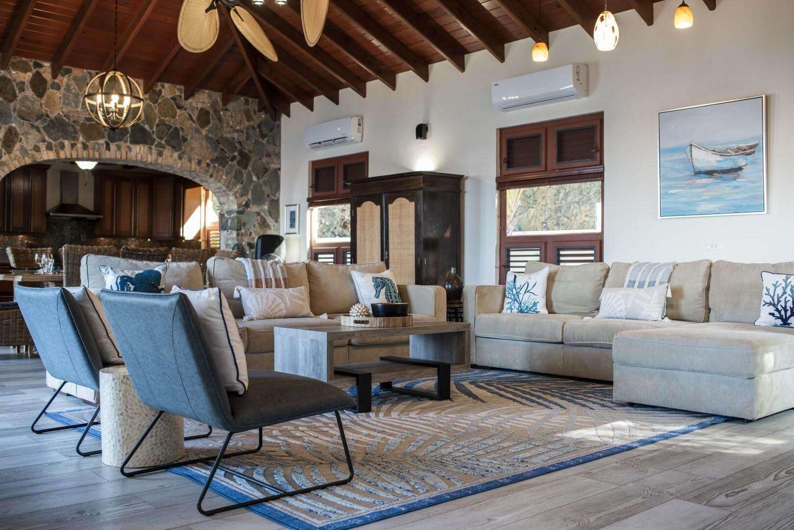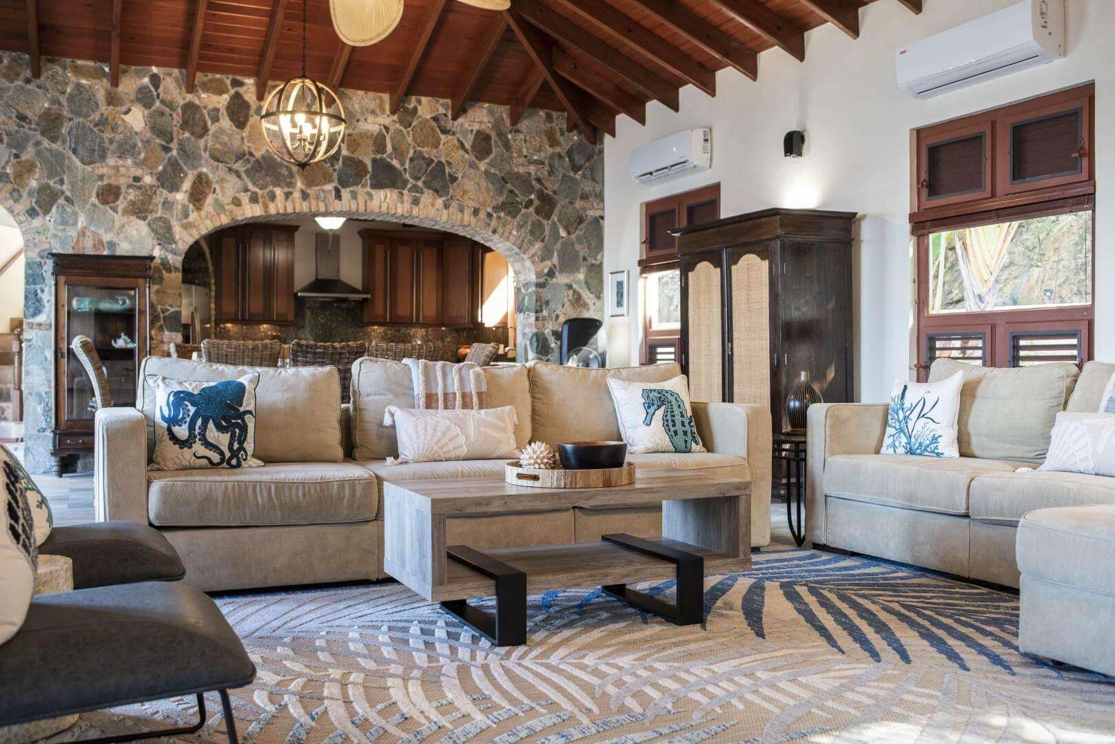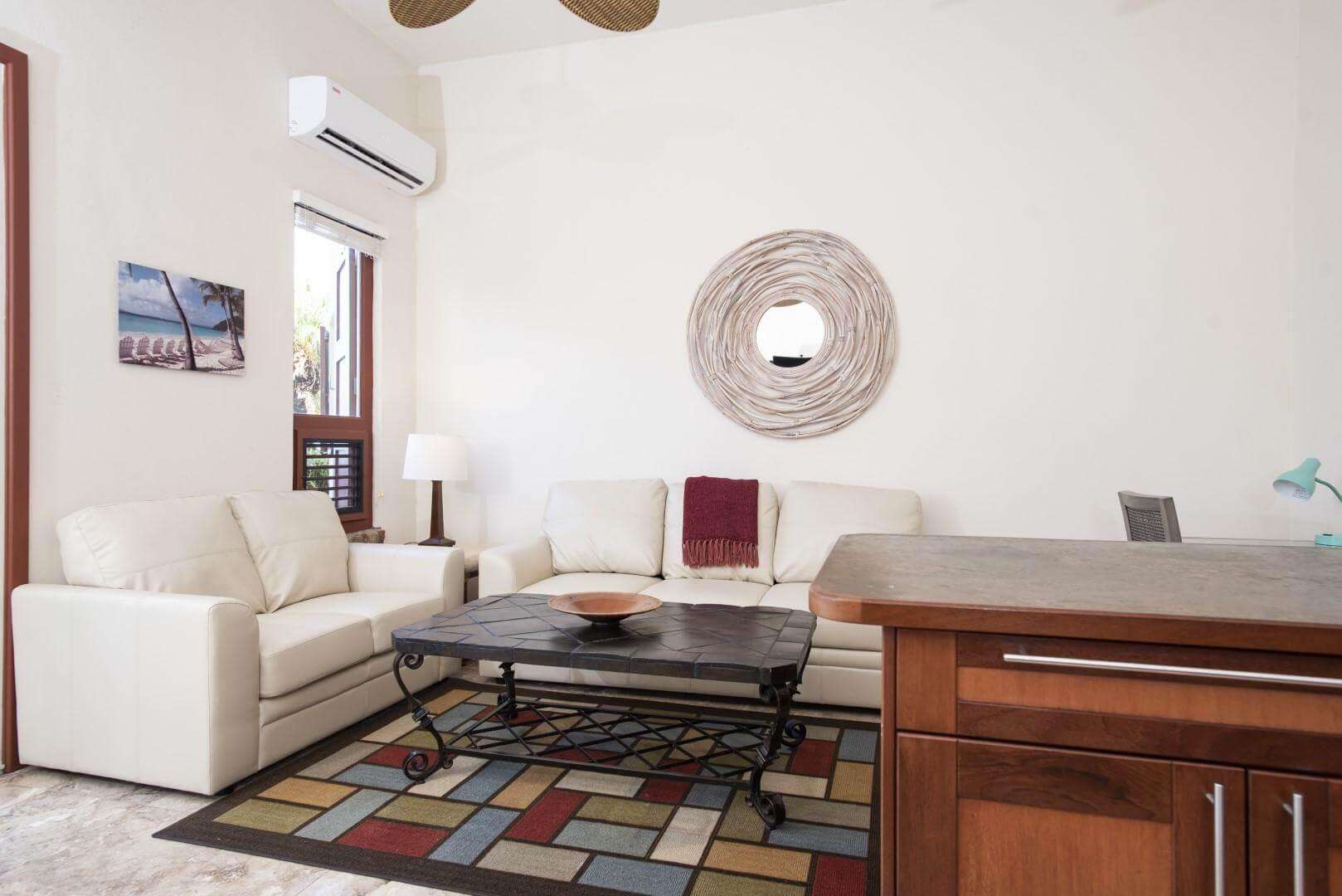 A Private 800 sf. one bedroom apartment is located on the property with its own private entrance and terrace overlooking the Sea. The apartment boasts its own living area, full kitchen and dining area. Perfect for your nanny, private chef, or the family members that appreciate some extra seclusion while also being steps away from the group. The apartment living area has a pull out full size sleeper sofa. You will have access to the entire villa during your stay.