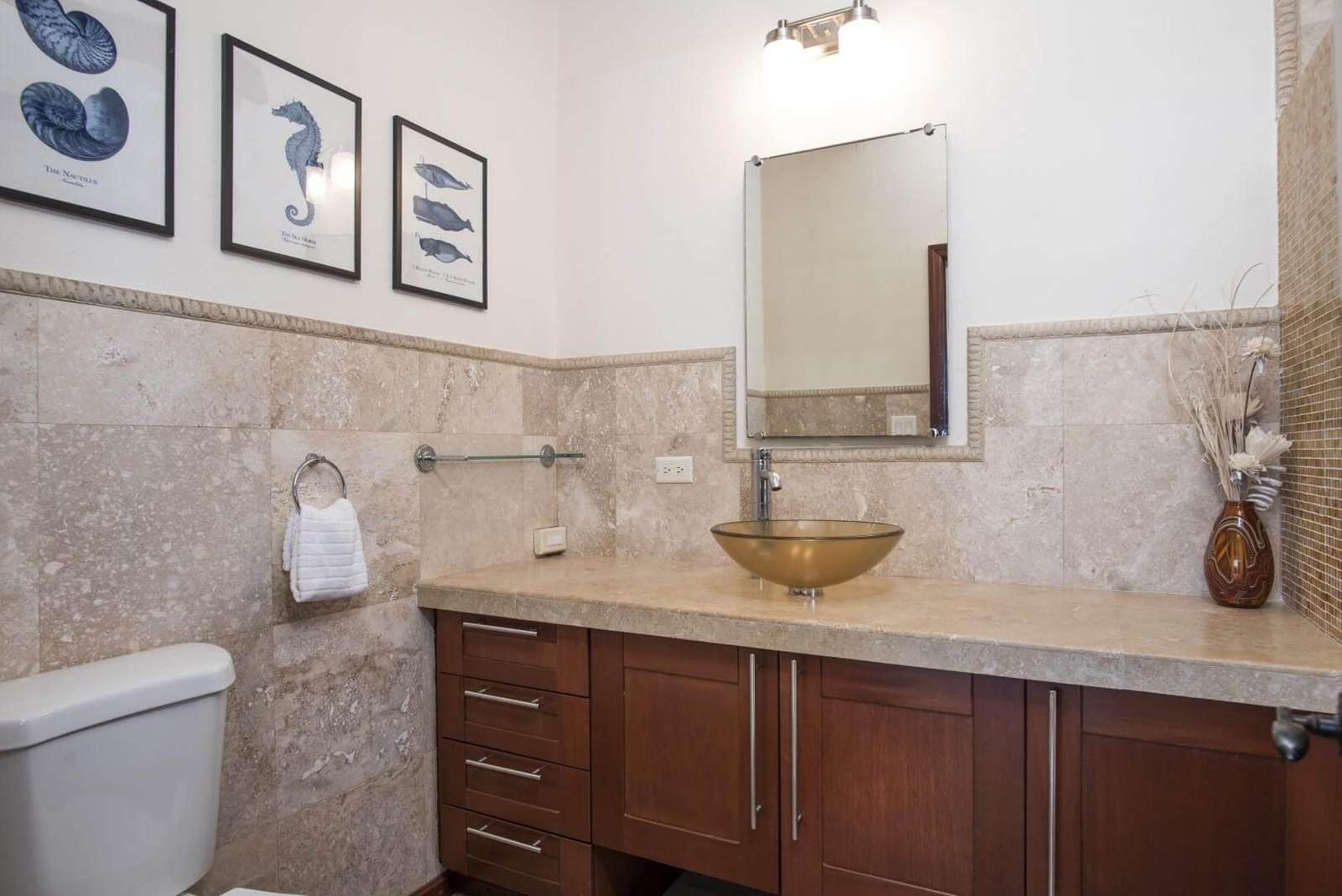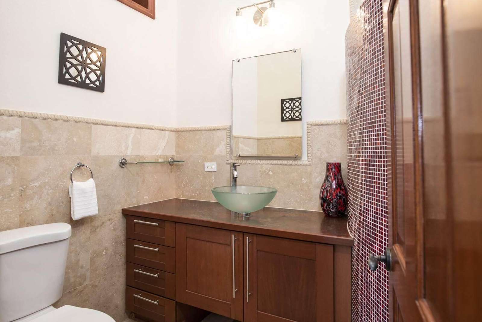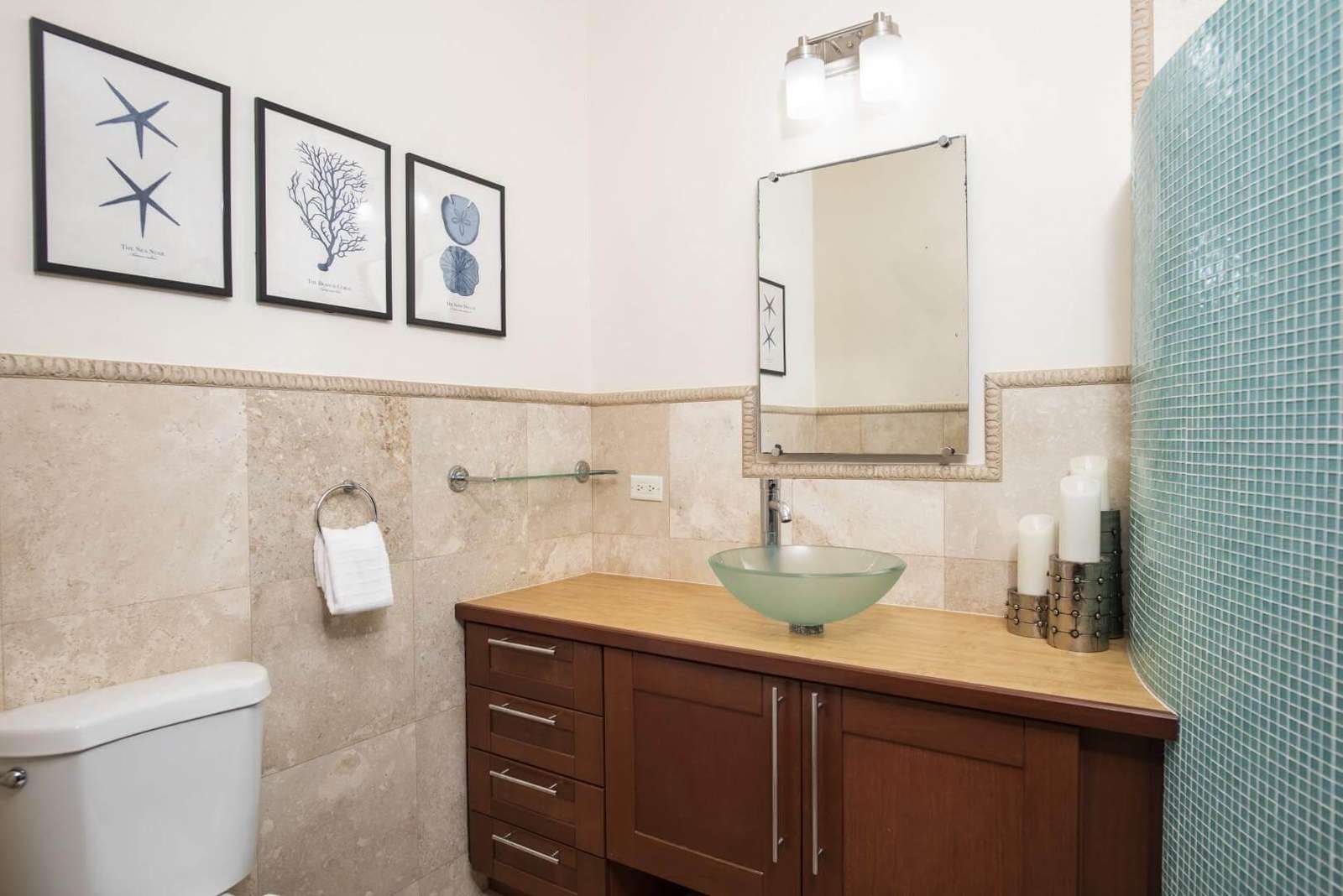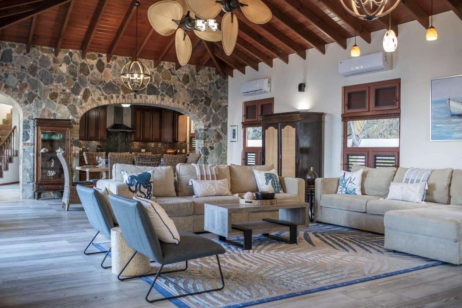 A Private 800 sf. one bedroom apartment is located on the property with its own private entrance and terrace overlooking the Sea. The apartment boasts its own living area, full kitchen and dining area. Perfect for your nanny, private chef, or the family members that appreciate some extra seclusion while also being steps away from the group. The apartment living area has a pull out full size sleeper sofa. You will have access to the entire villa during your stay.