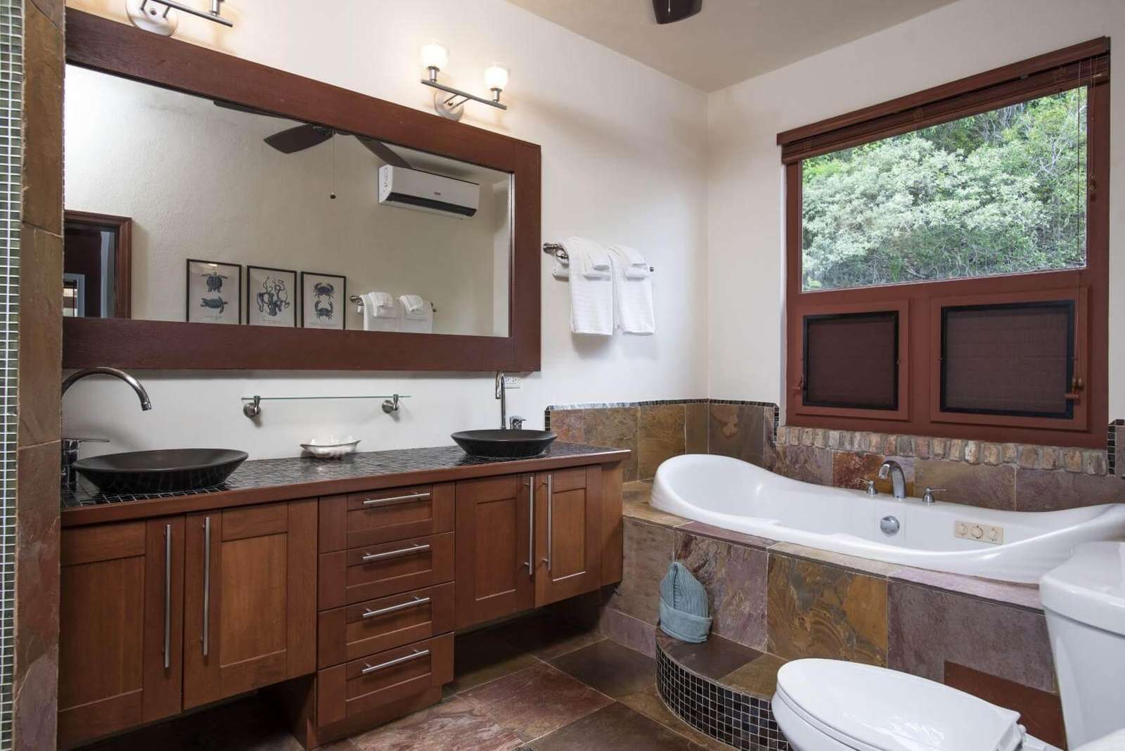Air Conditioning in all indoor spaces. Individual A/C in each bedroom.