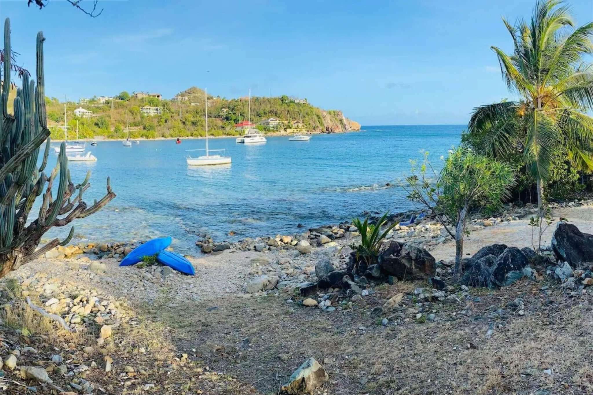 Immerse yourself in the crystal-clear waters just a short walk away from the villa. Enter the water to the South of the property, where you can enjoy paddleboarding or snorkeling in the bay. Encounter turtles and a variety of vibrant reef fish, creating unforgettable moments in this underwater paradise. If you prefer a sandy beach, take a leisurely stroll or paddleboard to the nearby Pond Bay Beach, or explore the stunning national park.