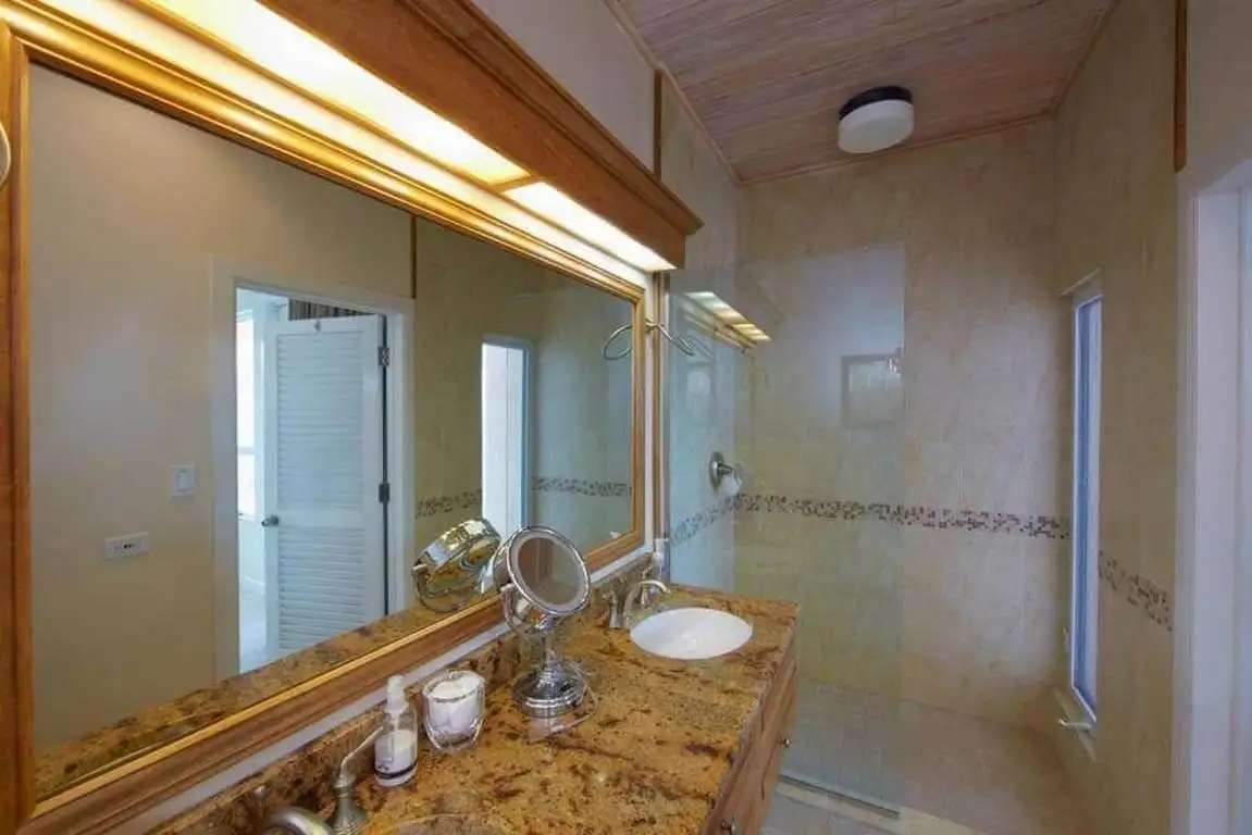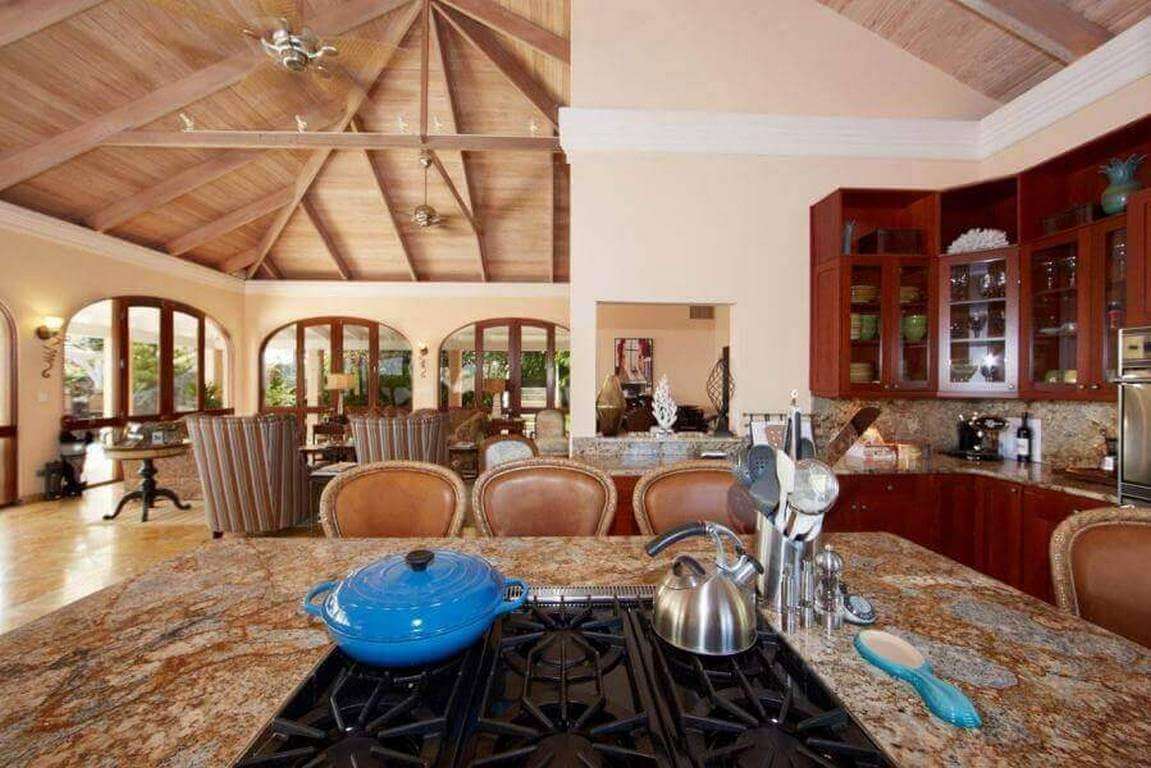 The villa is fully air-condiitioned although it's always best to turn off the air in the bedrooms when leaving them for the day. The rooms cool down very quickly upon turning the unit on. There is always a very nice breeze as well; both day and night. The main house contains a large great room with ample seating, a gourmet kitchen , dining area and a half bath. The 80” TV allowed our 24 year old to “game in style” with his gaming console.