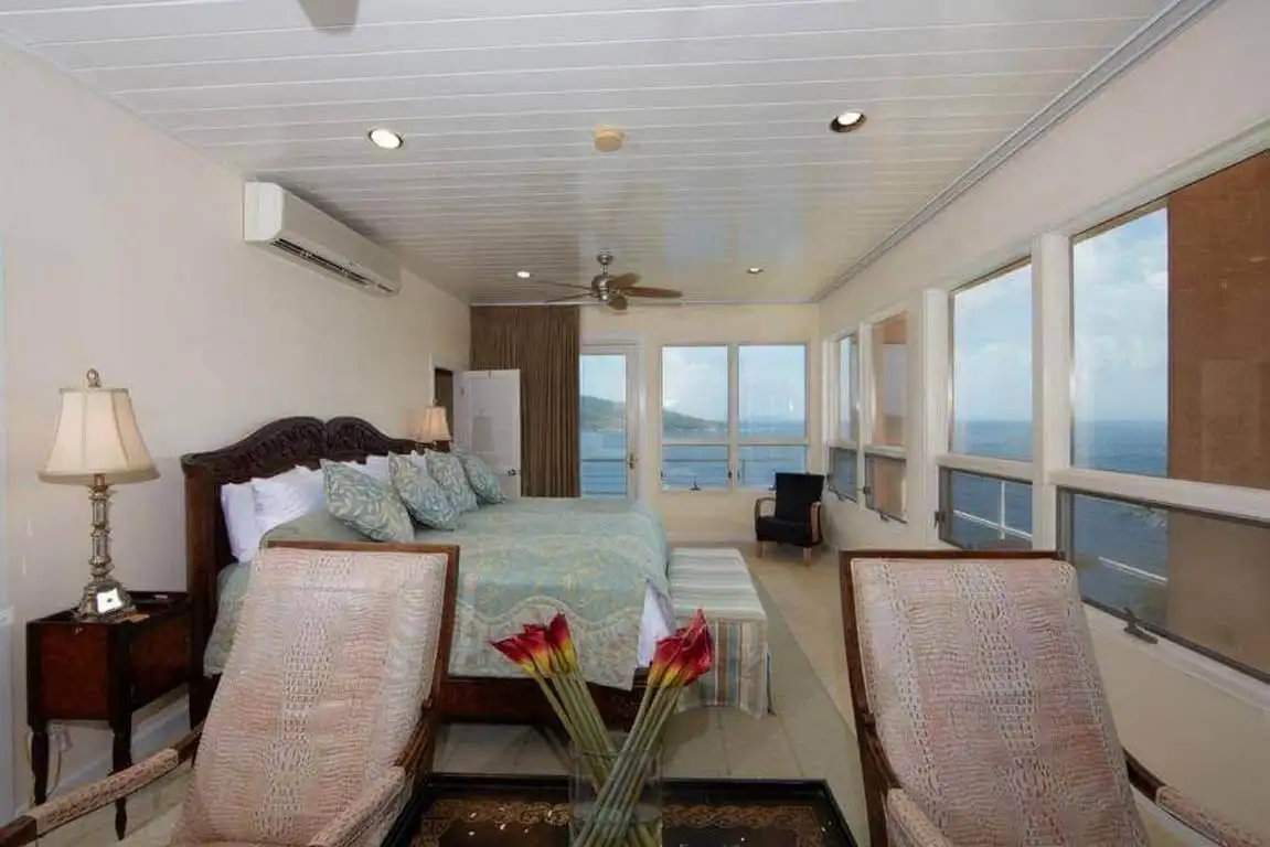 Breathtaking does not suffice when describing this immaculate, beautiful, clean and stunning property. The views from the pool, the deck, the "honey moon" suite or the master bedroom are unparalleled. All the amenities are provided for either a once in a lifetime getaway, or an extended stay on the island.